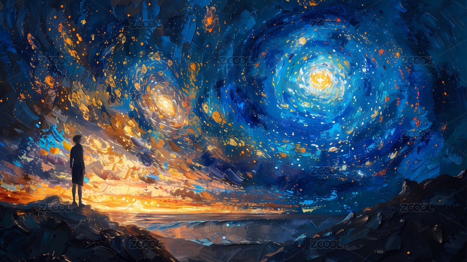 水彩,蓝色,天空,星星,太阳,螺旋,星系,宇宙,太空,星云