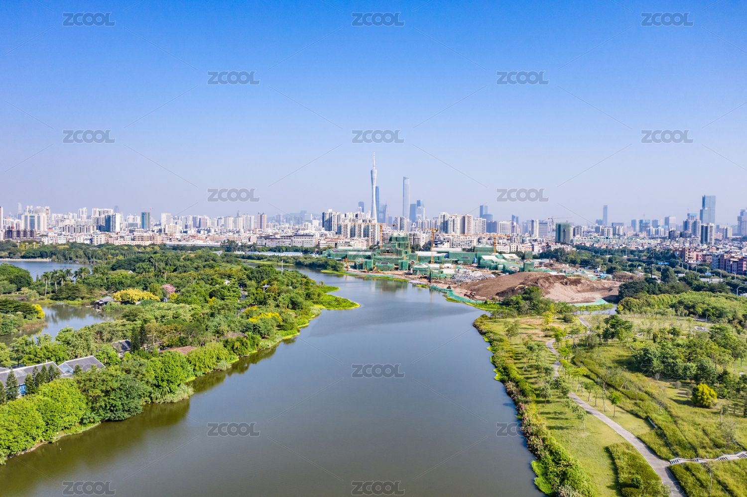 航拍从海珠湖远眺广州塔小蛮腰风光