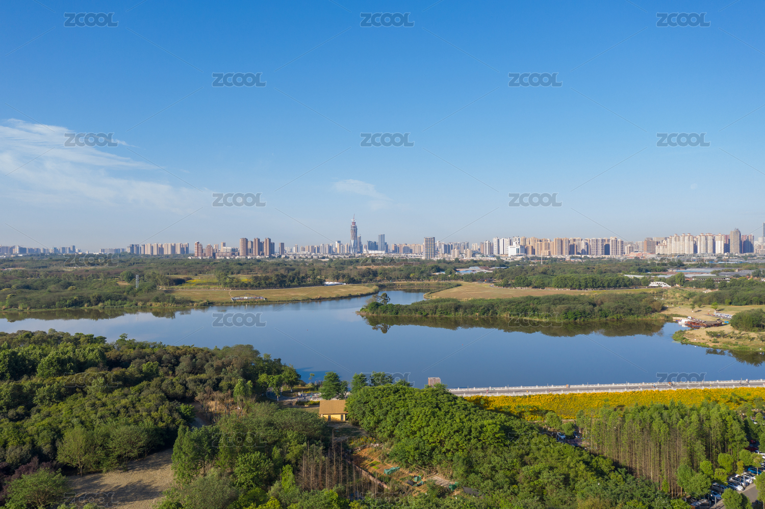 成都龙泉驿区青龙湖湿地公园白昼航拍