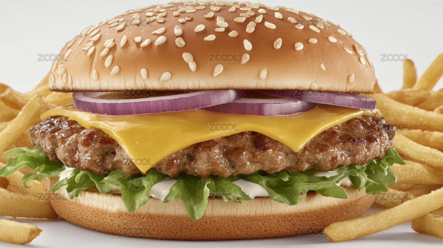 特写,美食,食品,汉堡,一个,烘焙,面包,鸡肉,芝麻,不健康的