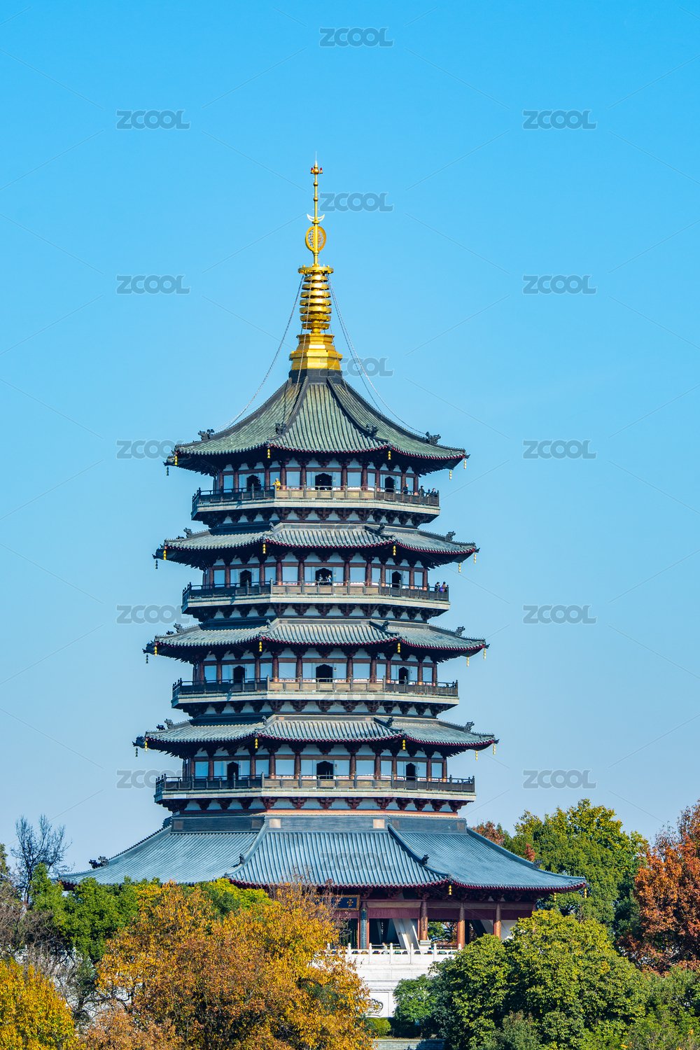 中国浙江杭州西湖标志性古建筑雷峰塔