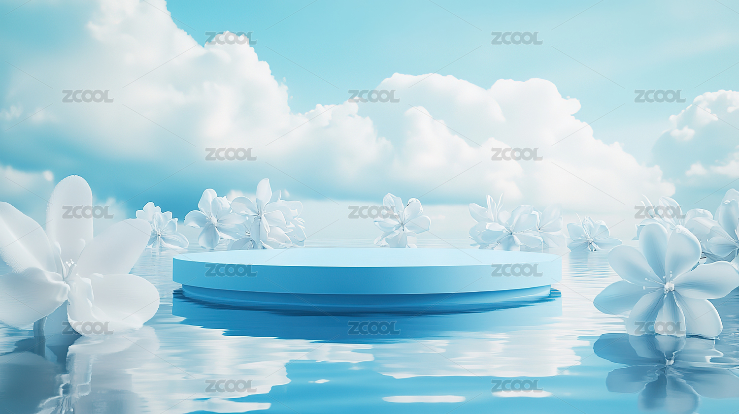 蓝色,海水,清澈,水,花,鸡蛋花,白色,c4d,电商,展台