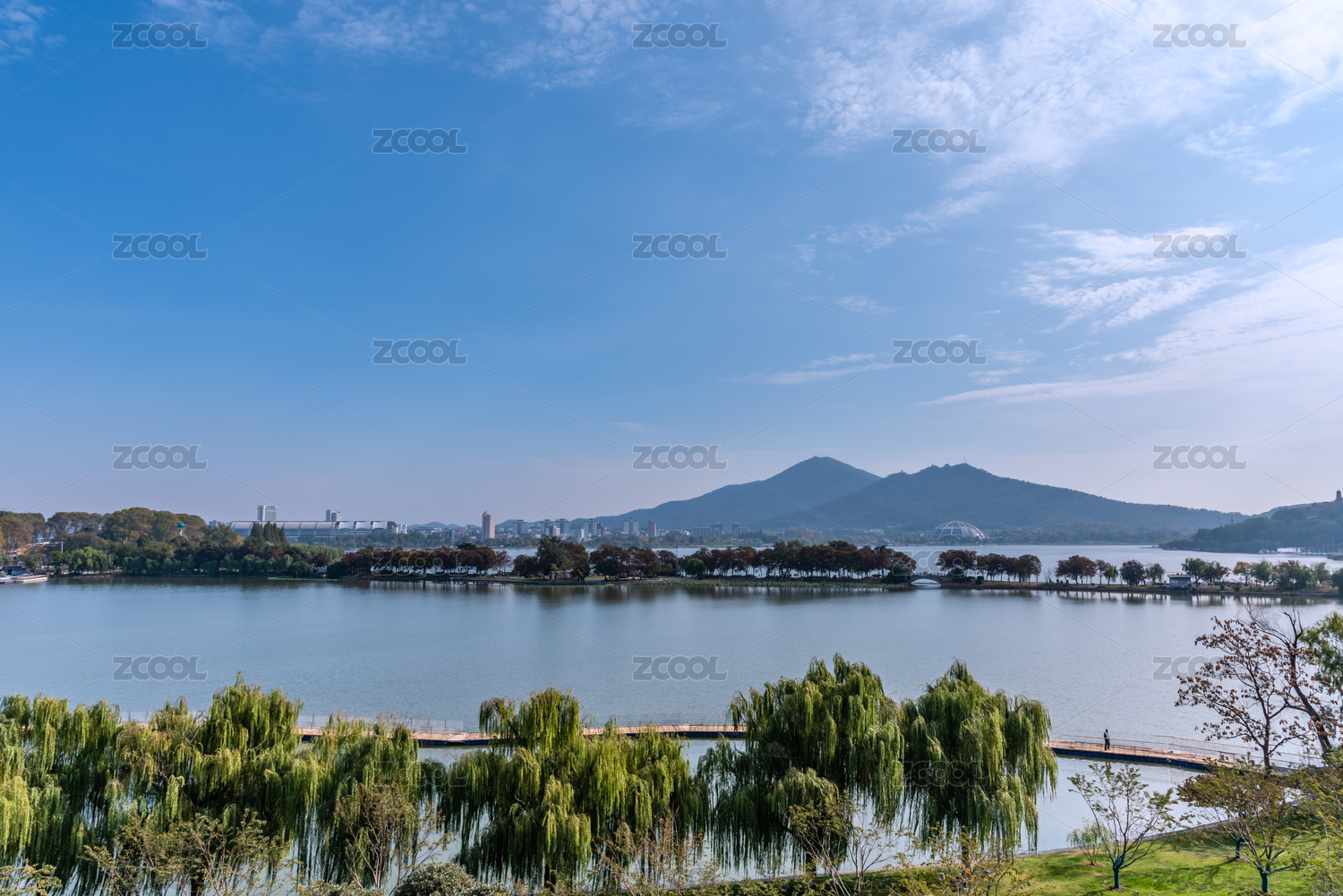 远眺中国南京玄武湖和钟山