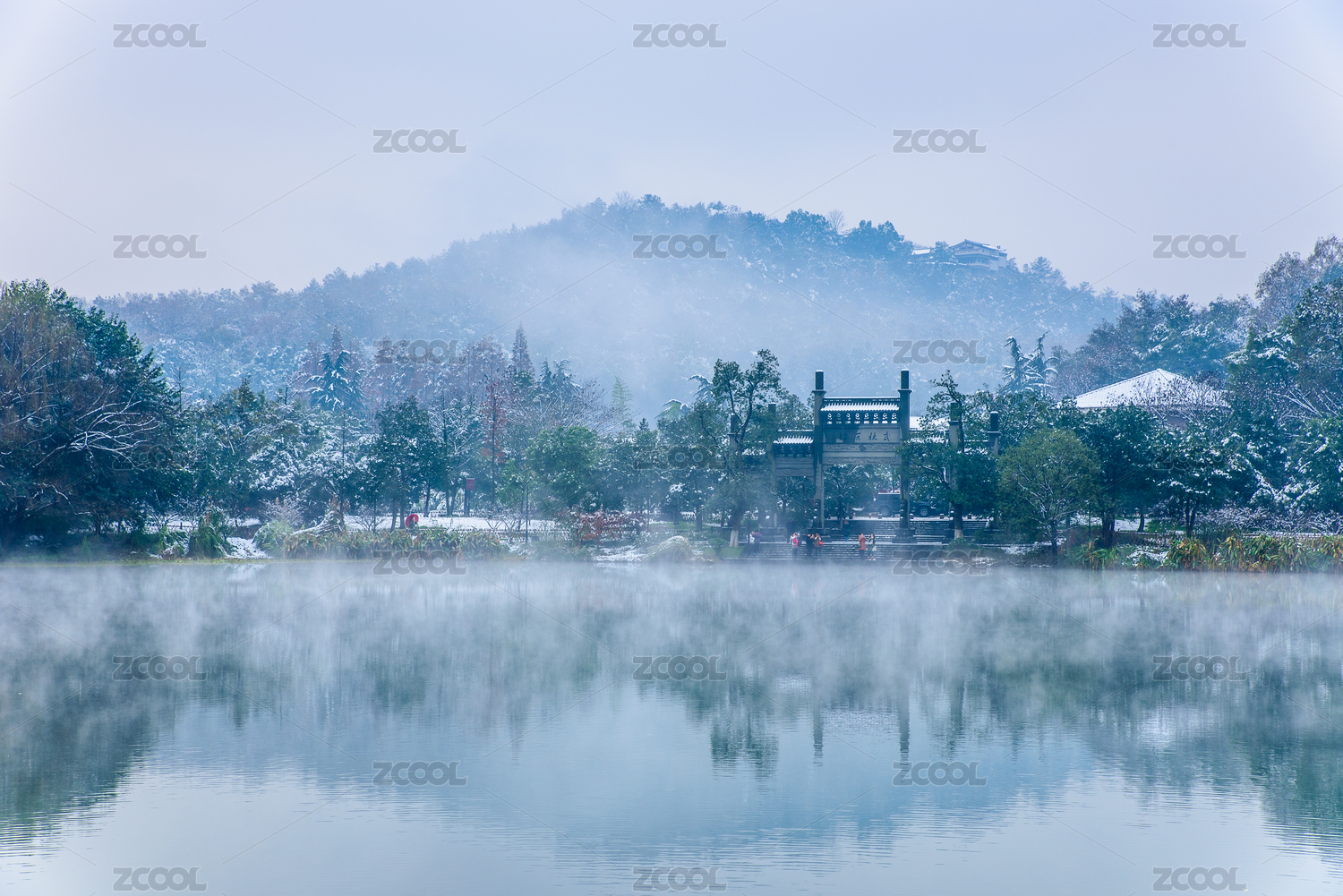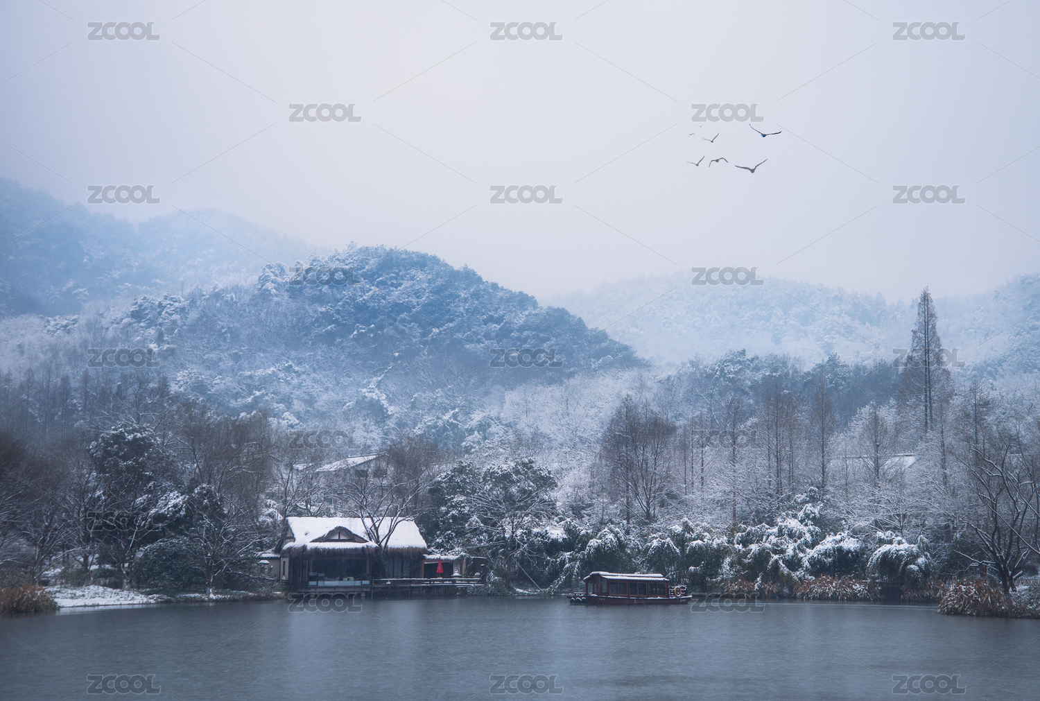 2018年华东地区第一场大雪杭州西湖边浴鹄湾茅家埠景区银装素裹高清雪景风光大图