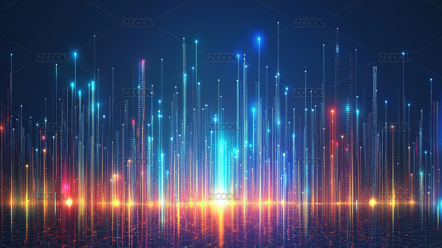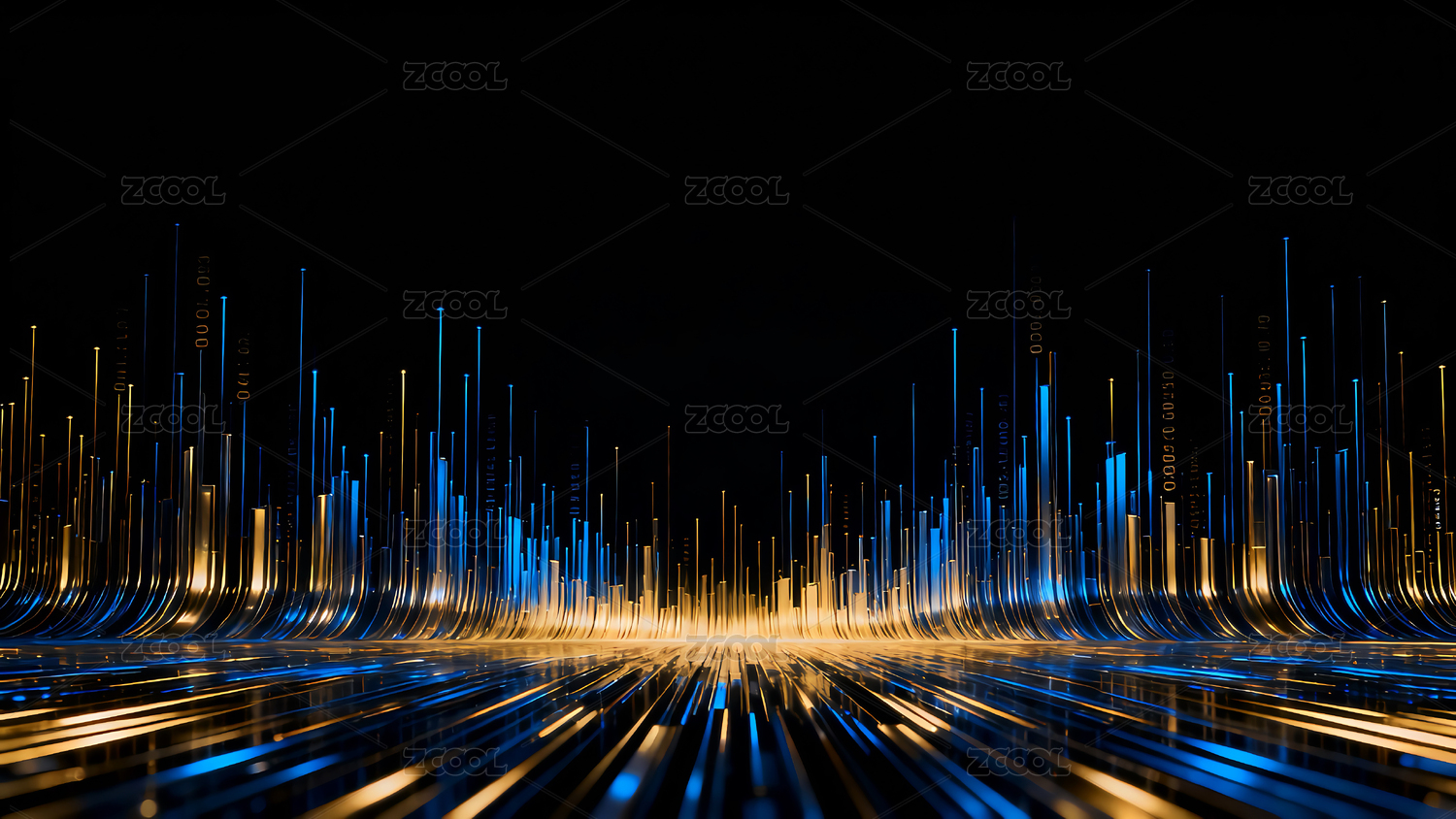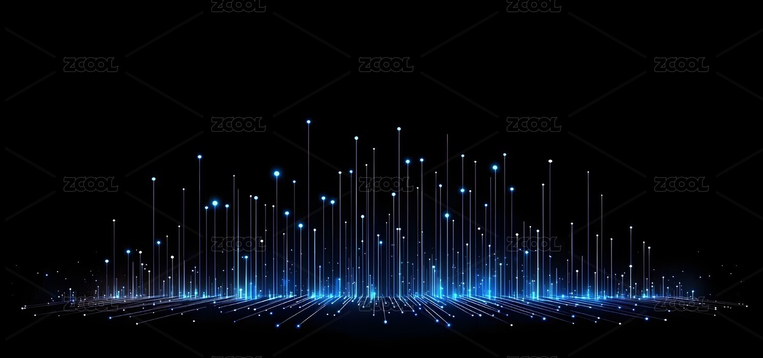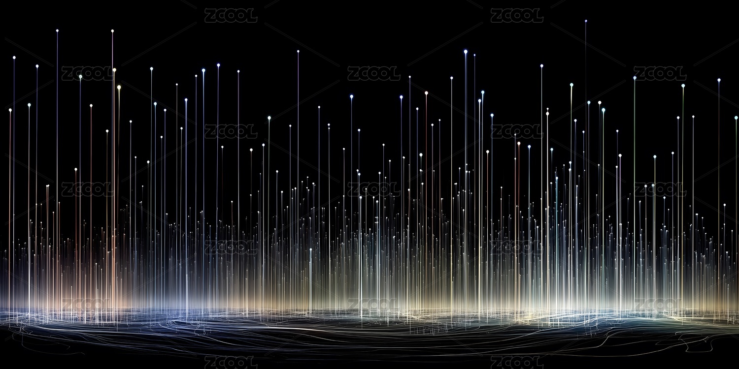 黑色背景下被照亮的蓝色光纤的特写镜头