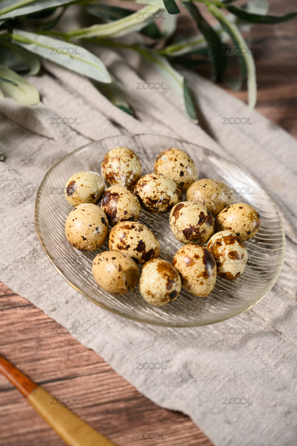 桌面上的盘子里的美味可口的盐焗鹌鹑蛋