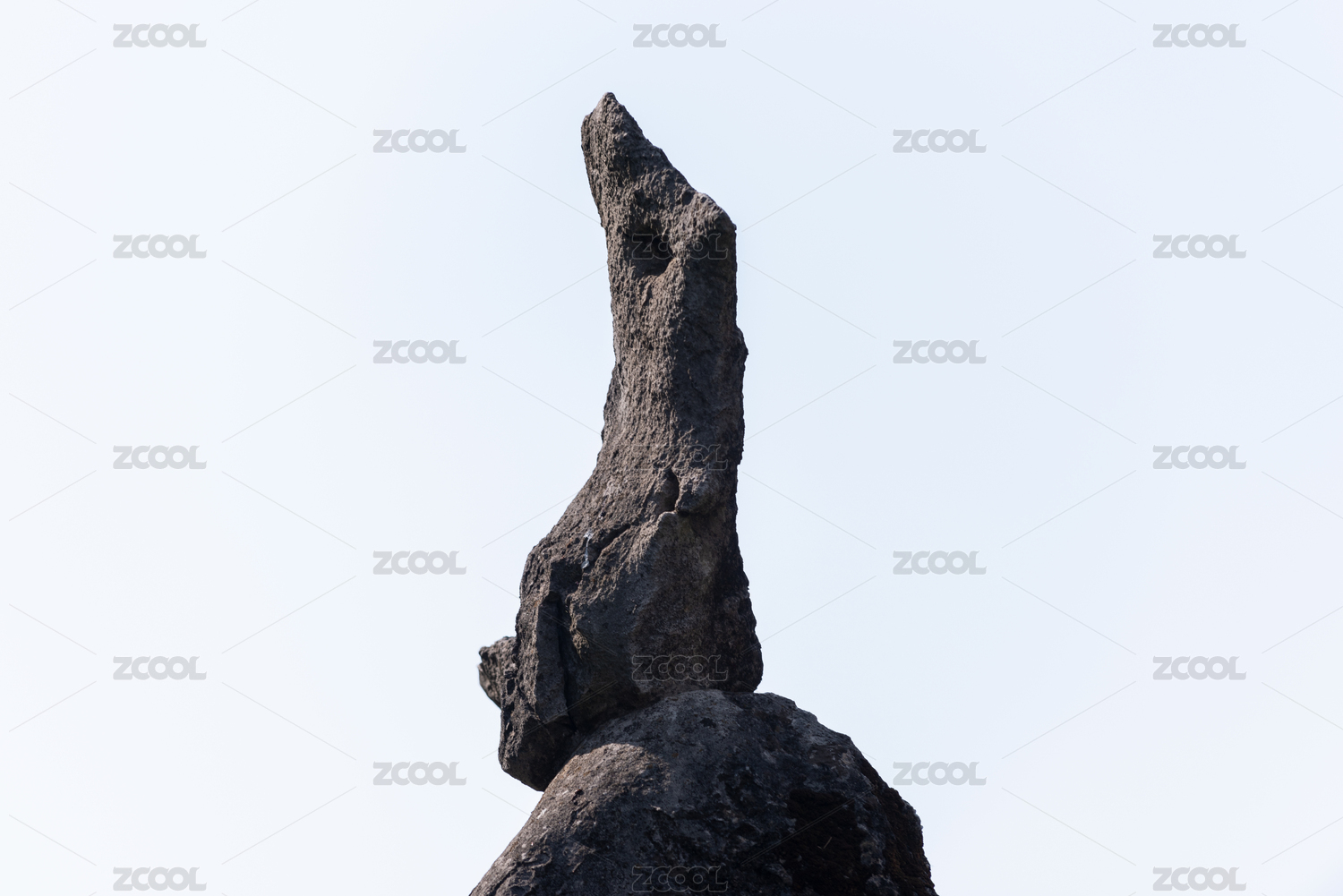 山顶的岩石,摆放在灰白色雾气前