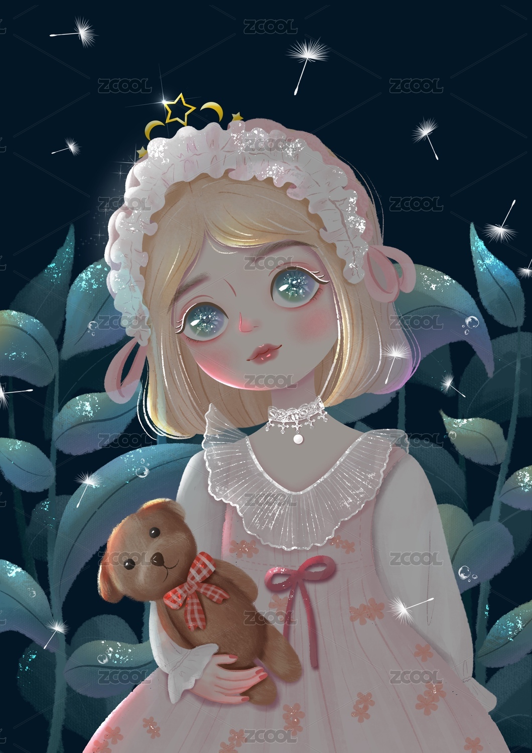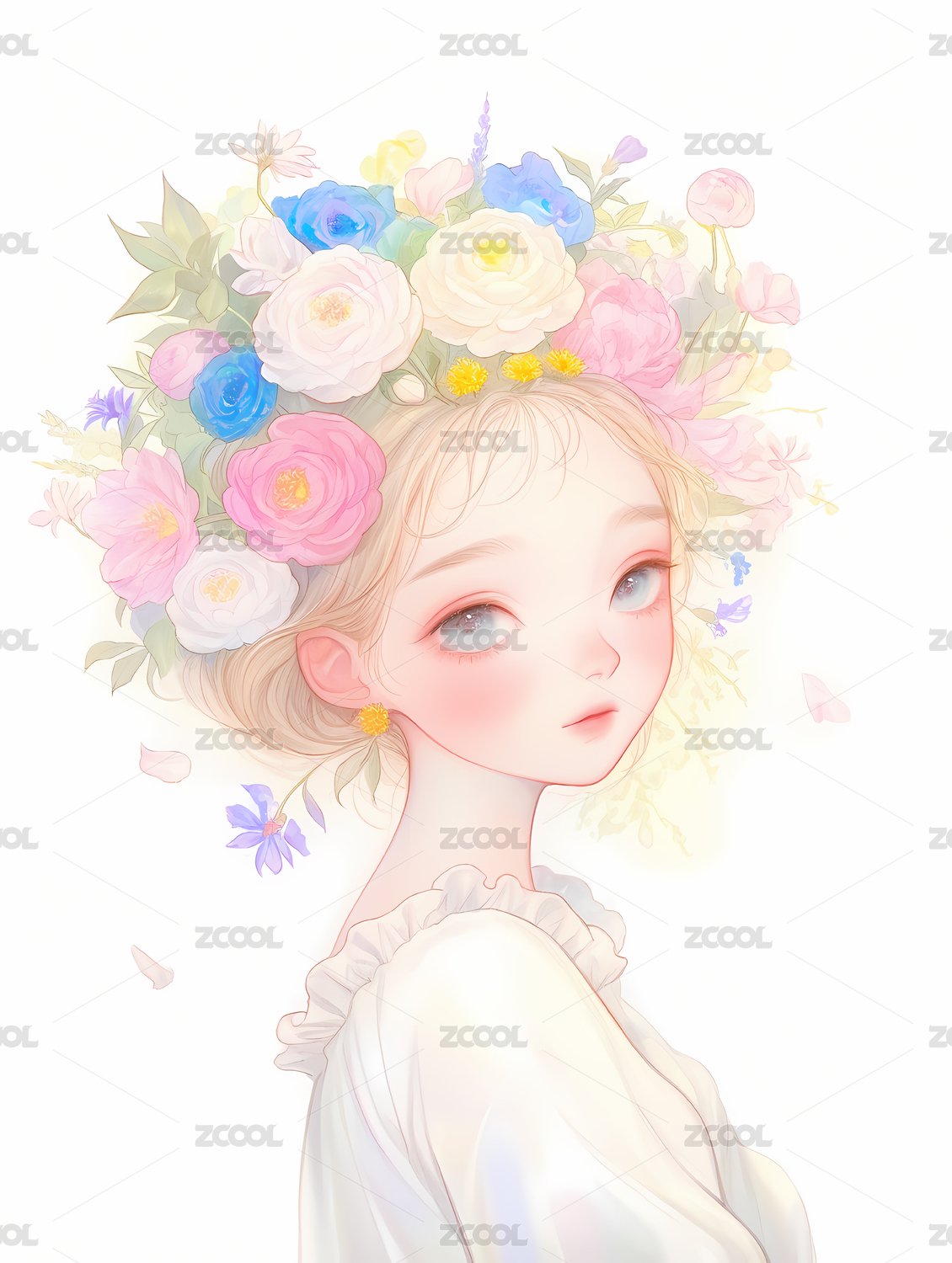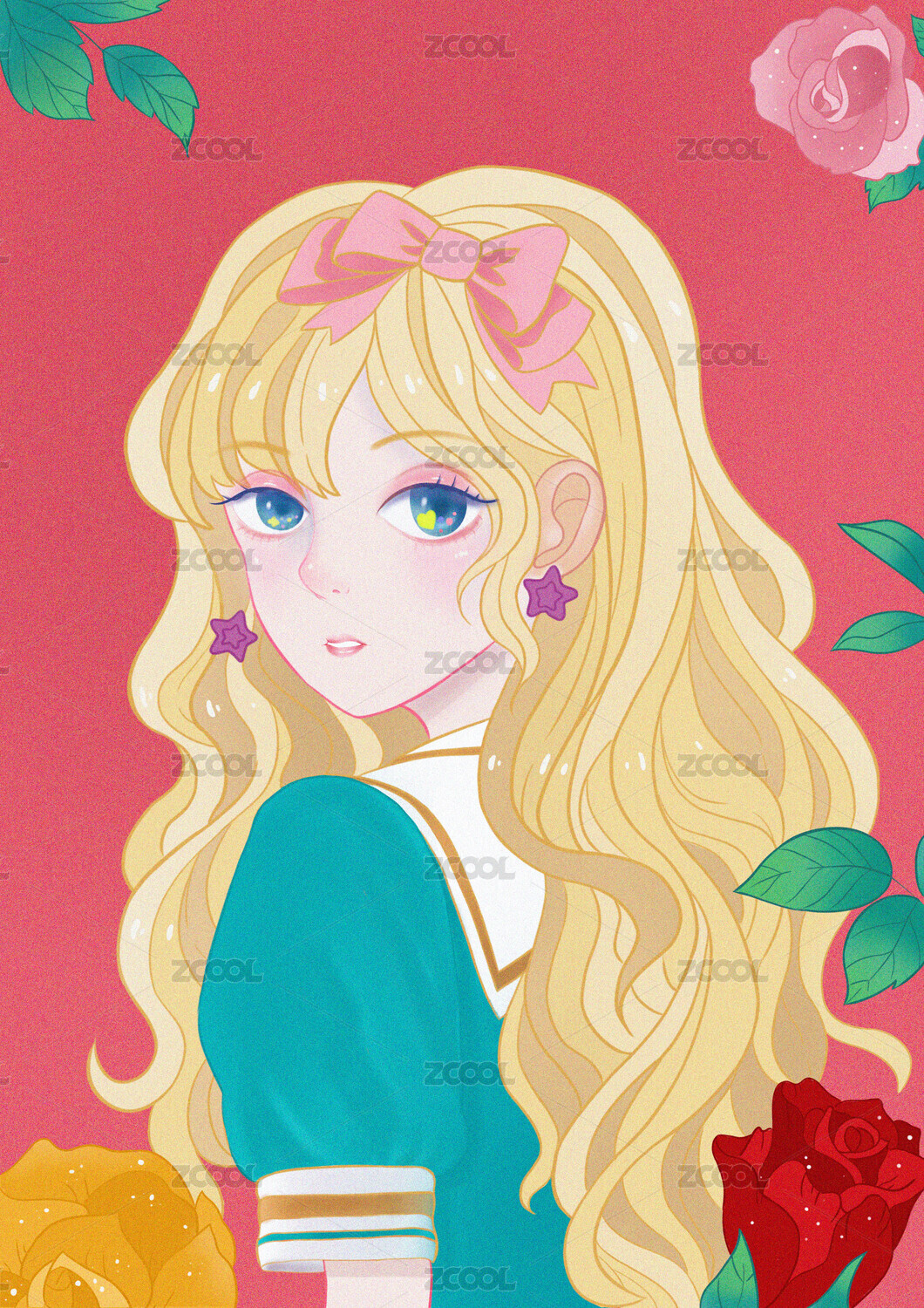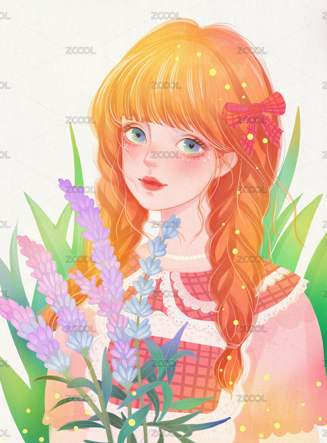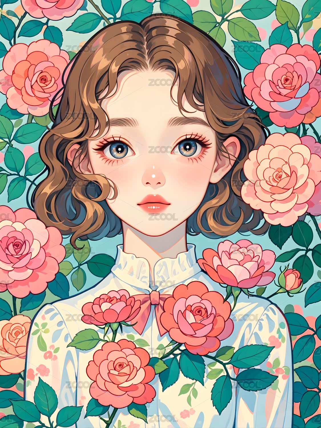 清新治愈系玫瑰花可爱少女人物 板绘仿水彩