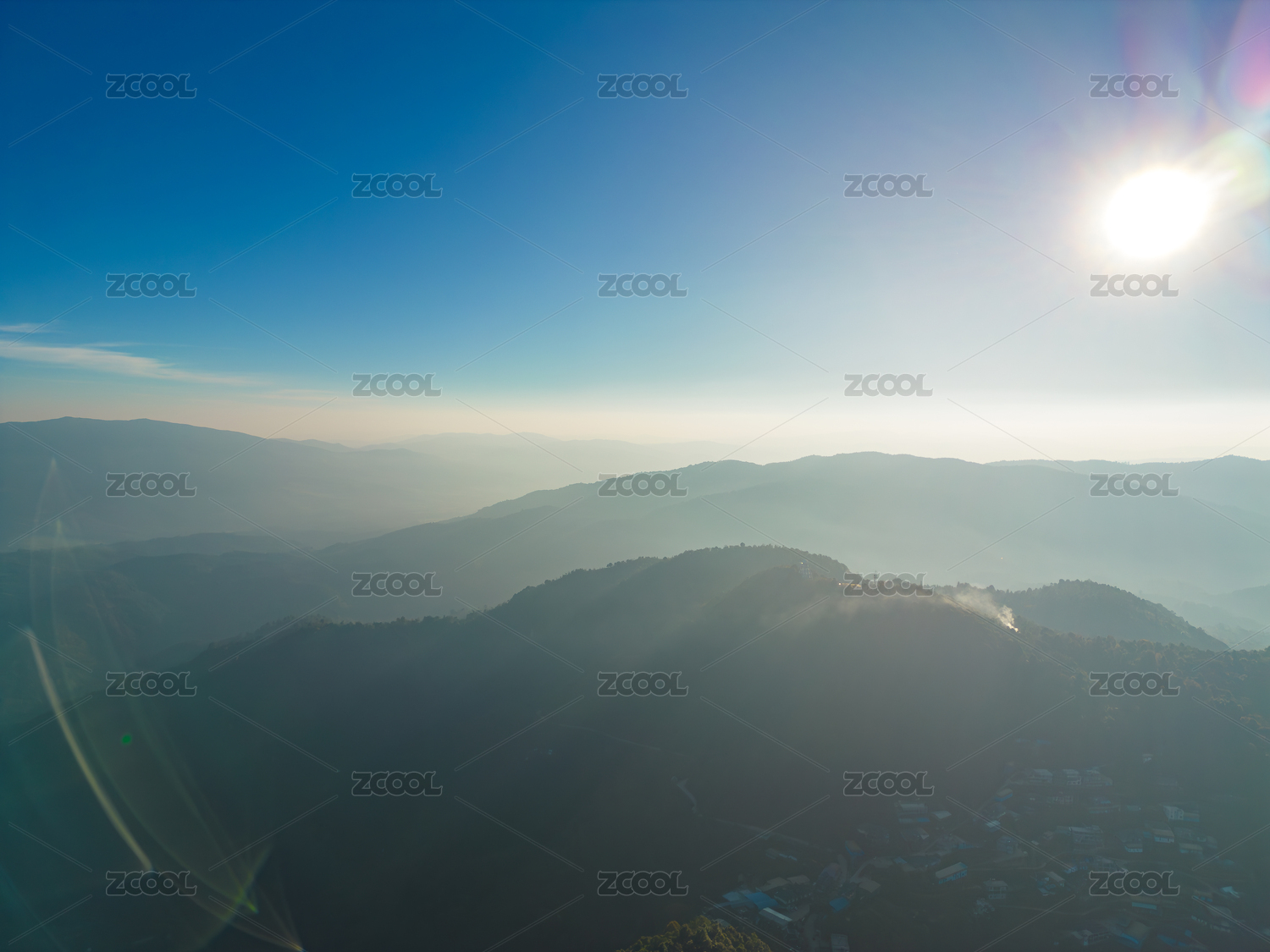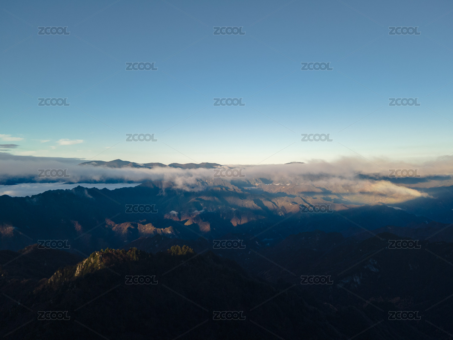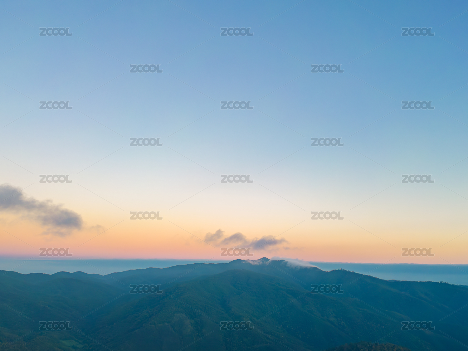 航拍日落时群山对天的景色