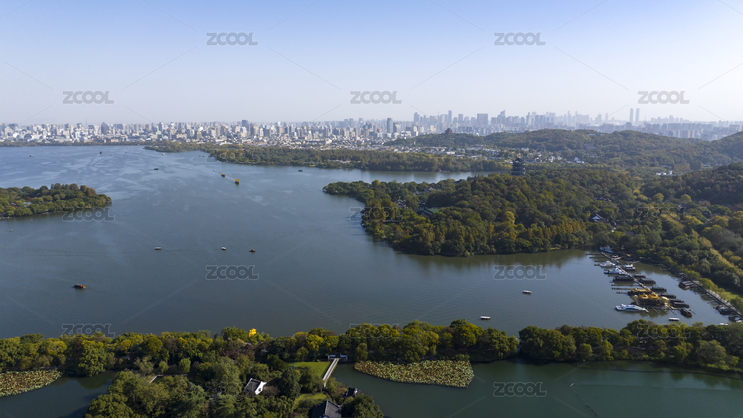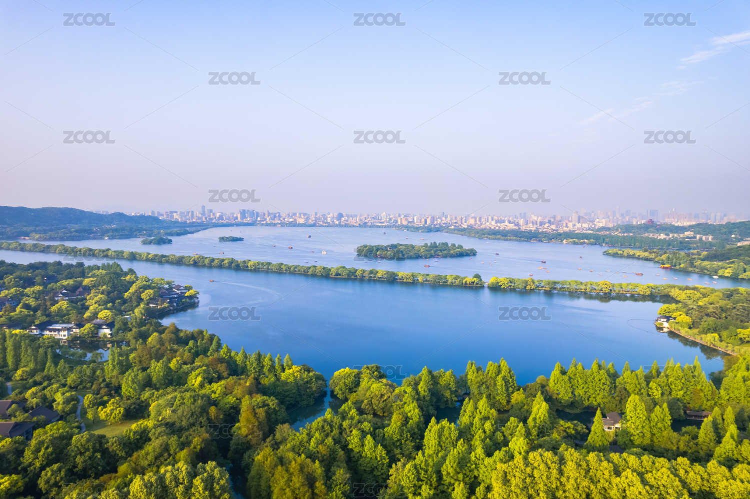 杭州西湖高视角航拍 湖光山色的诗意画卷
