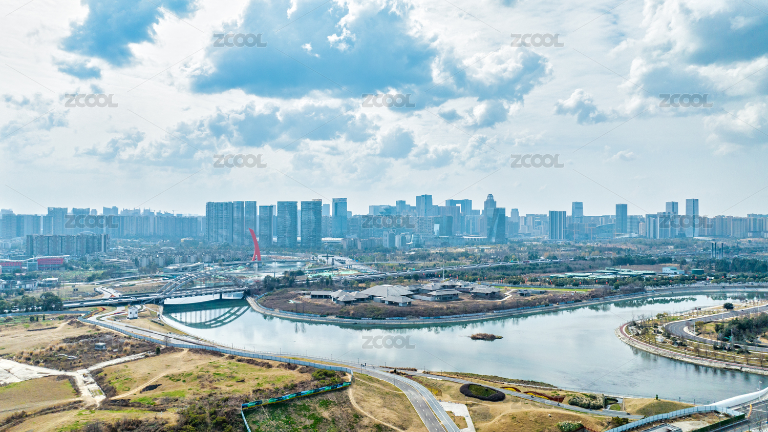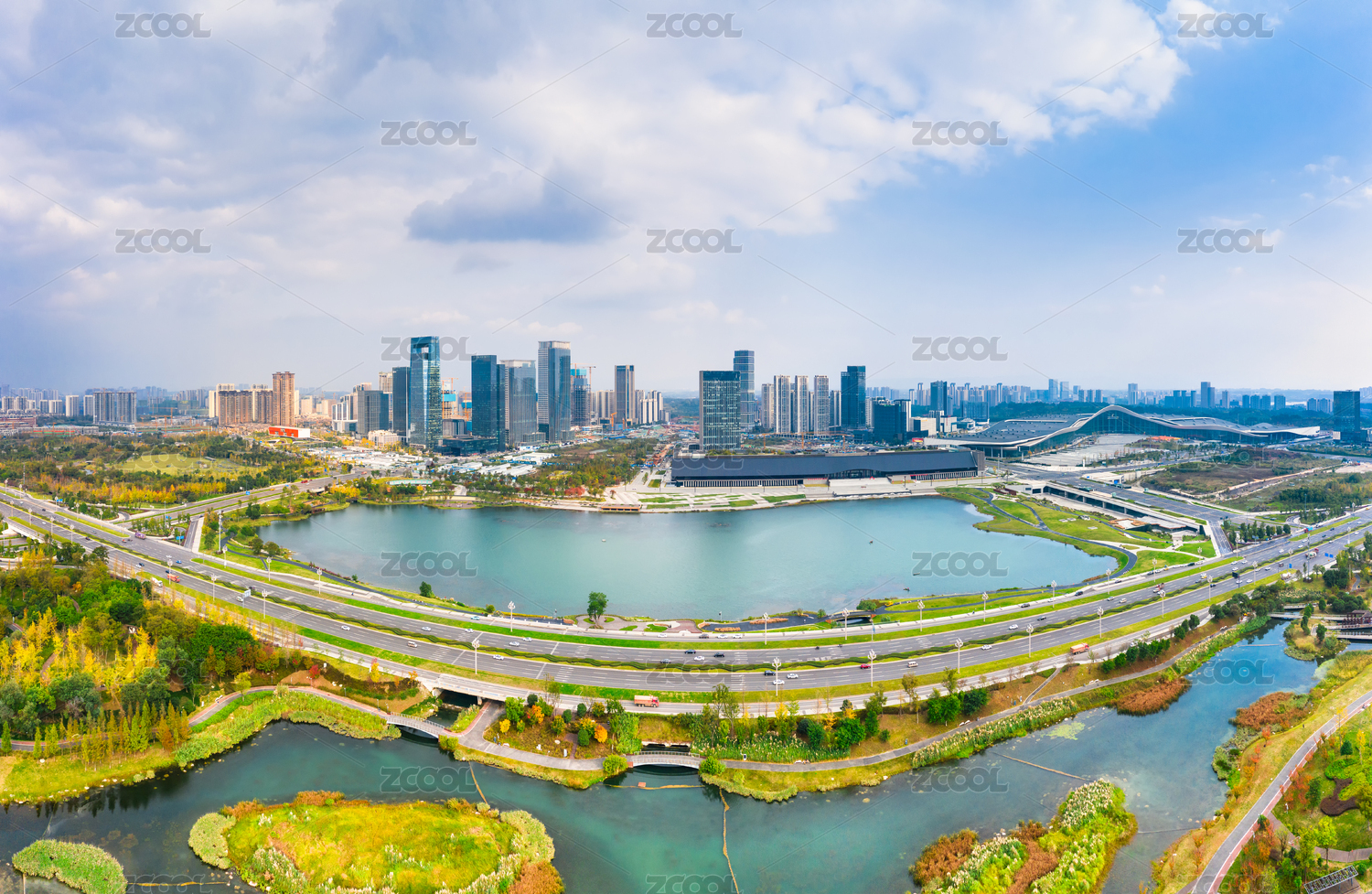 成都天府新区秦皇湖天府公园秋季风光航拍图
