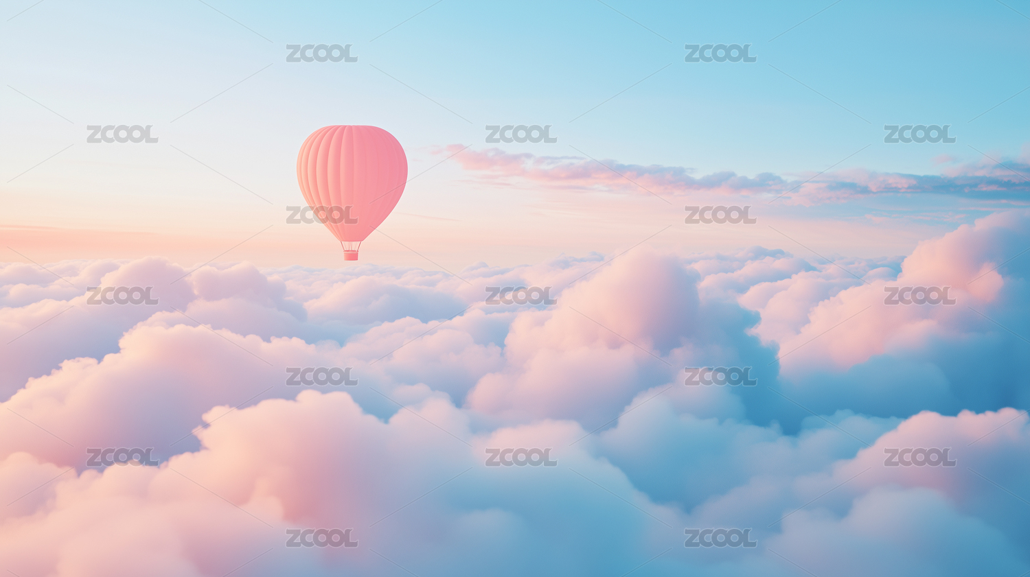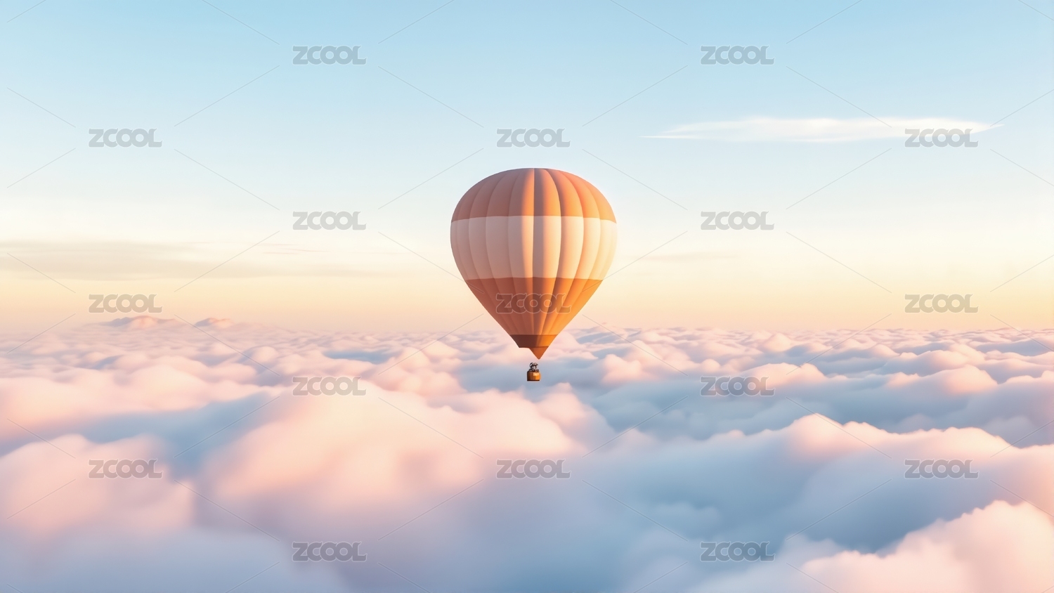 高空云海上翱翔的热气球插画