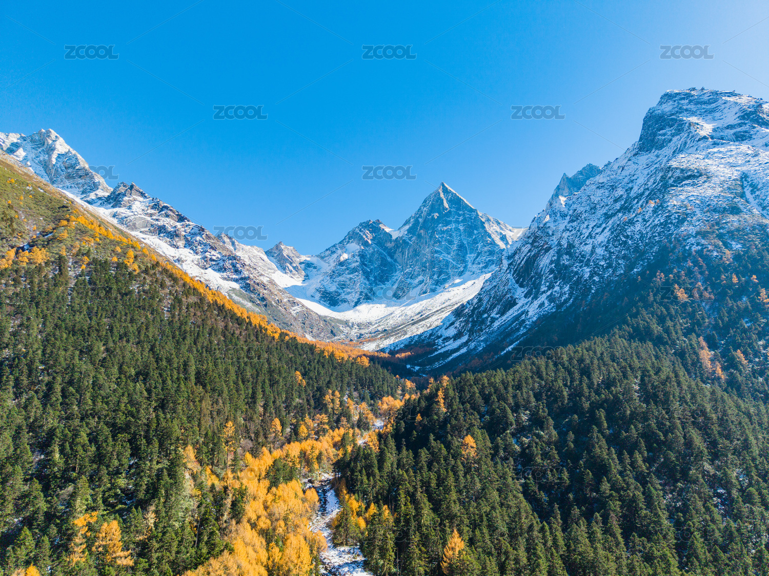 四川四姑娘山双桥沟景区秋天的雪山美景