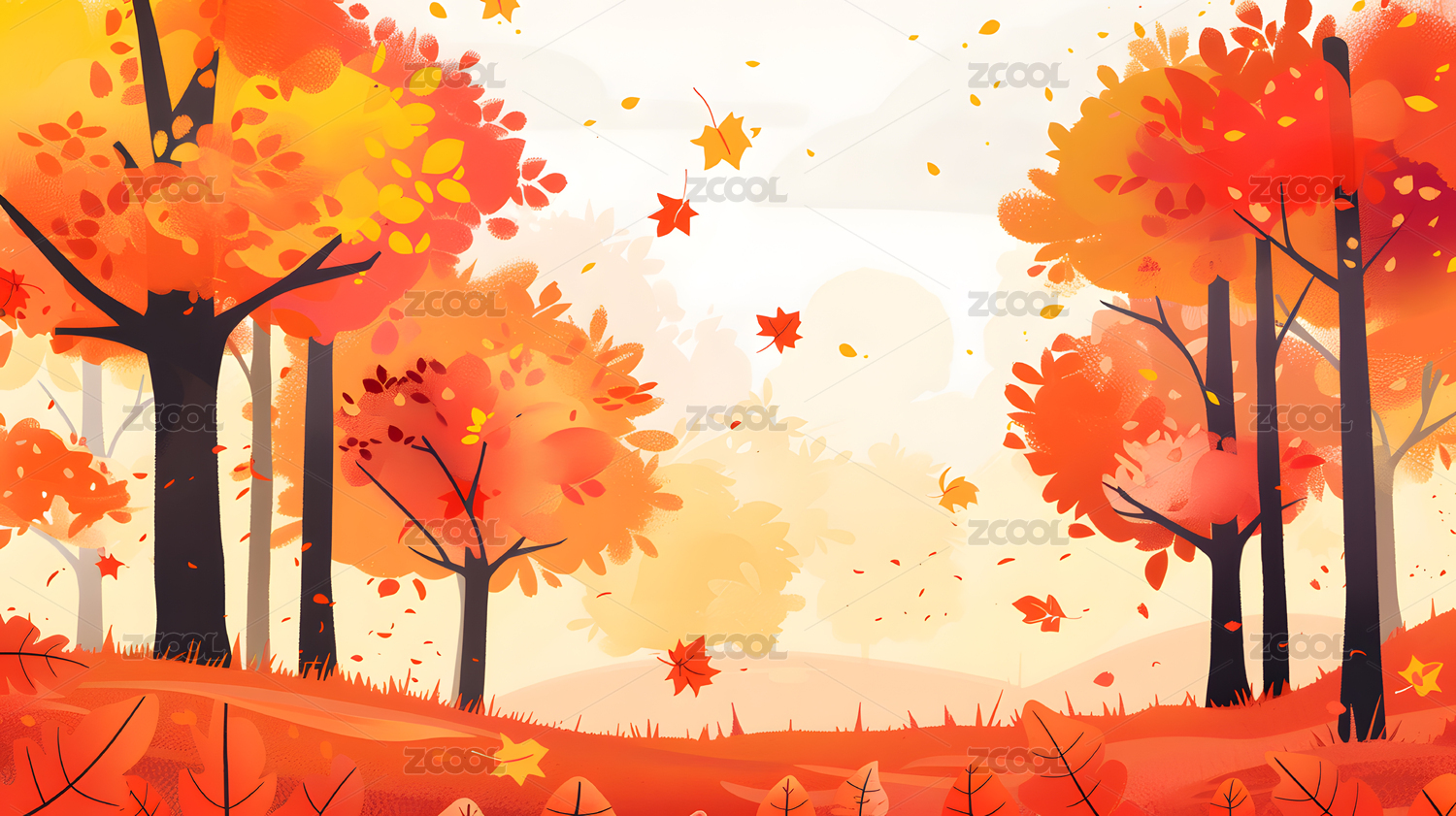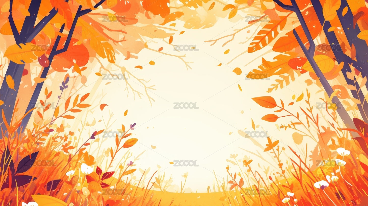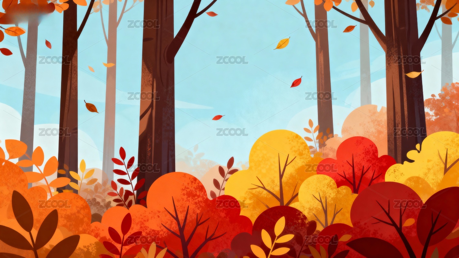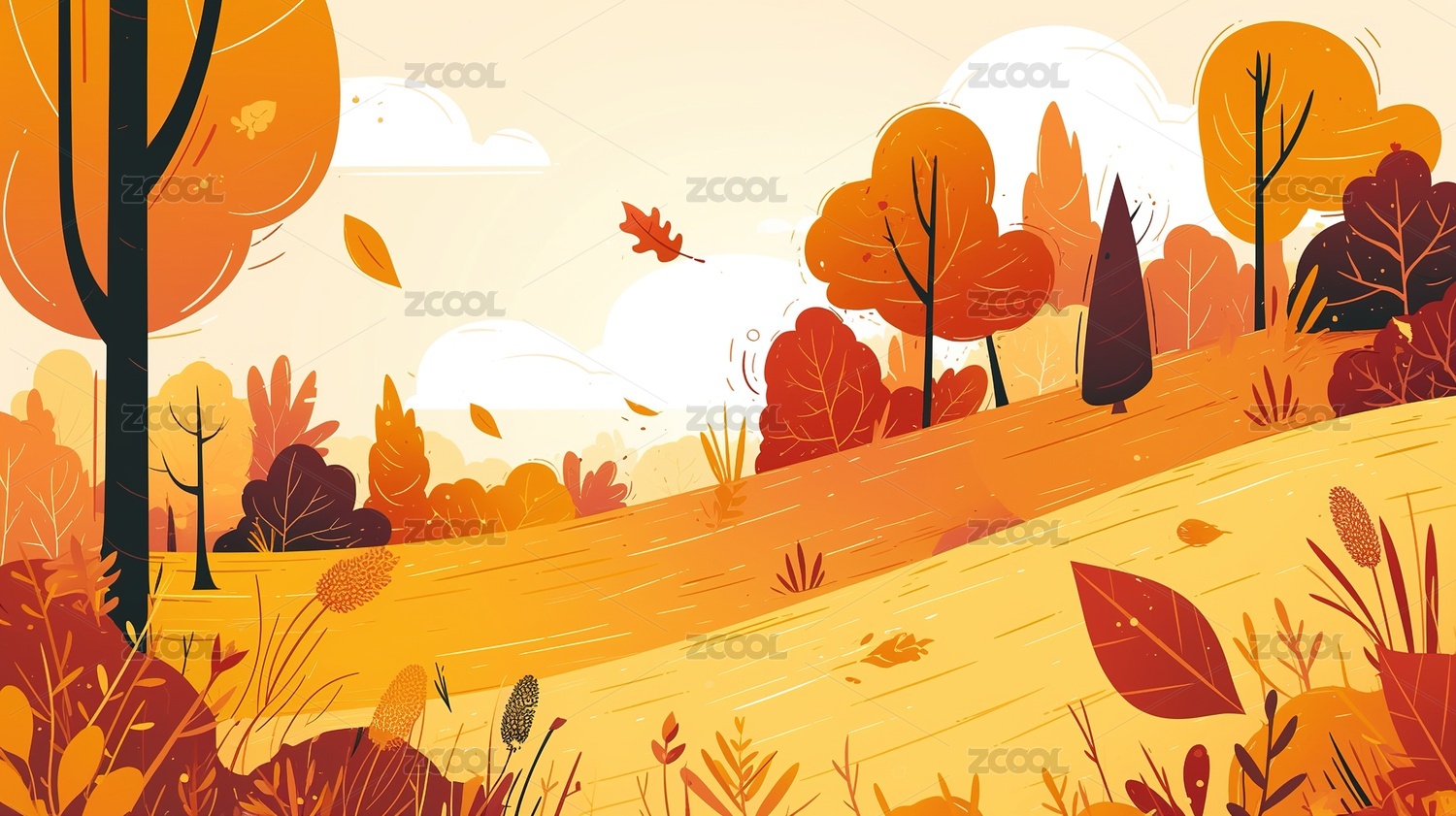 秋天秋季立秋秋分自然户外风景卡通漫画插画
