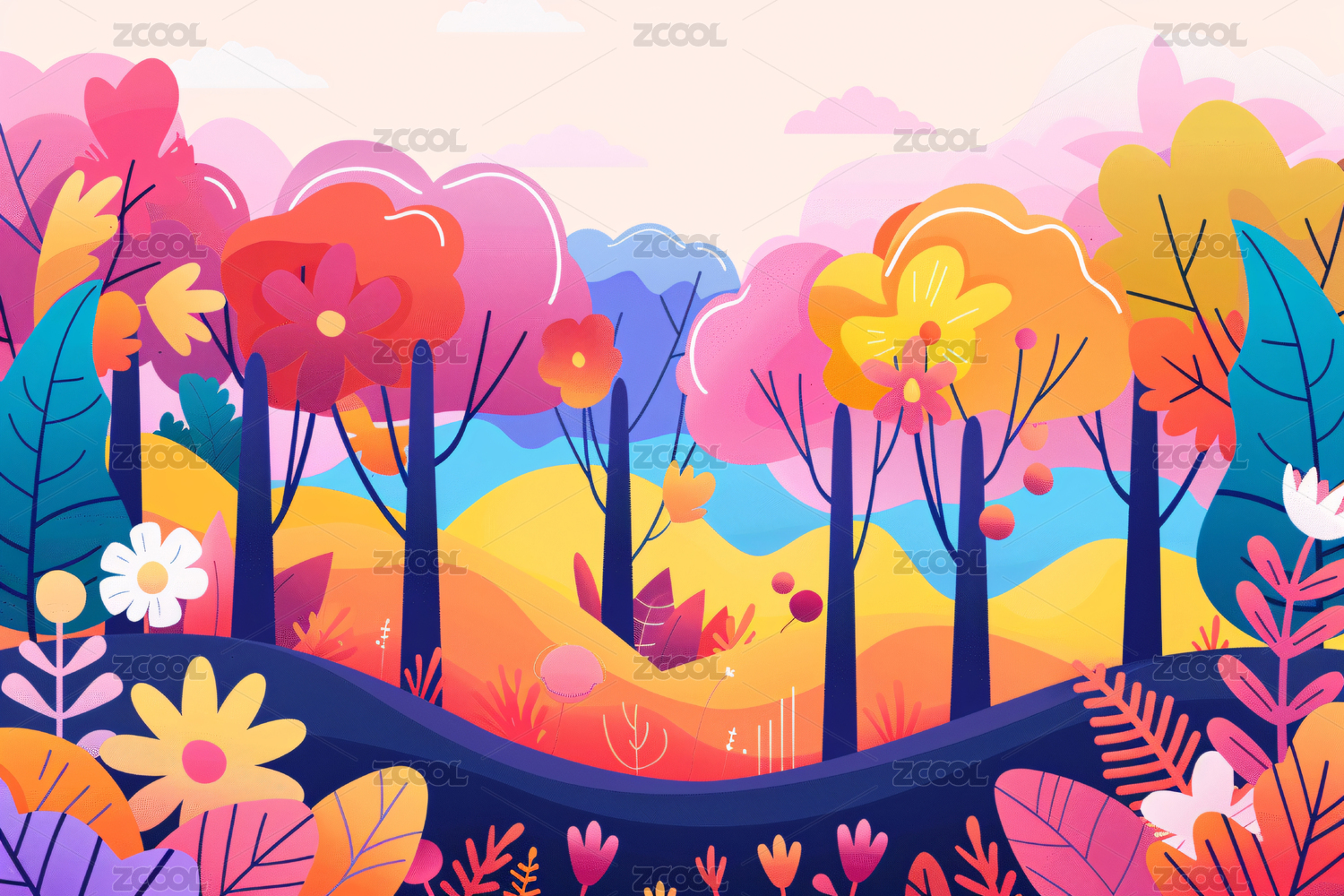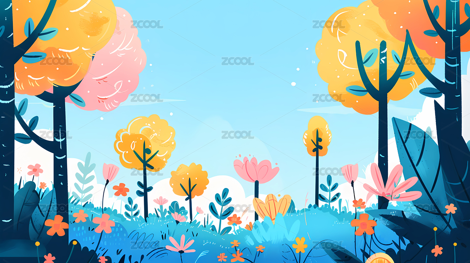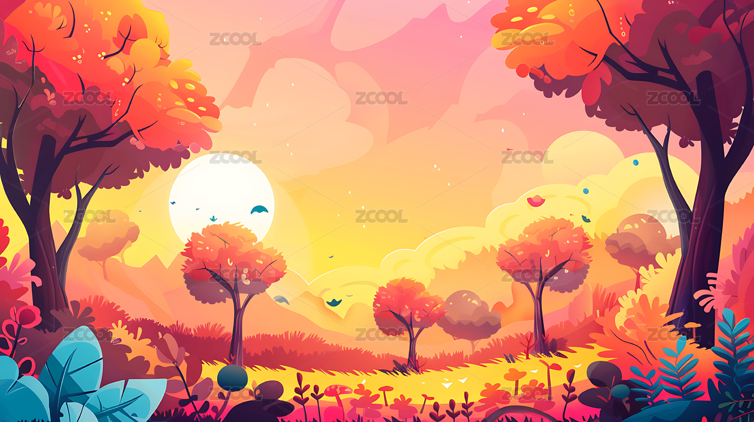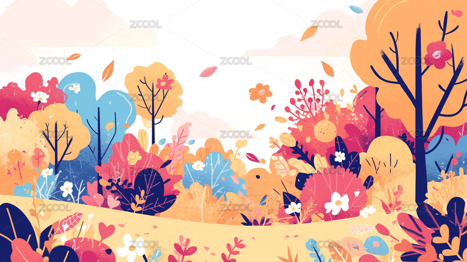 秋天秋季立秋秋分自然户外风景卡通漫画插画