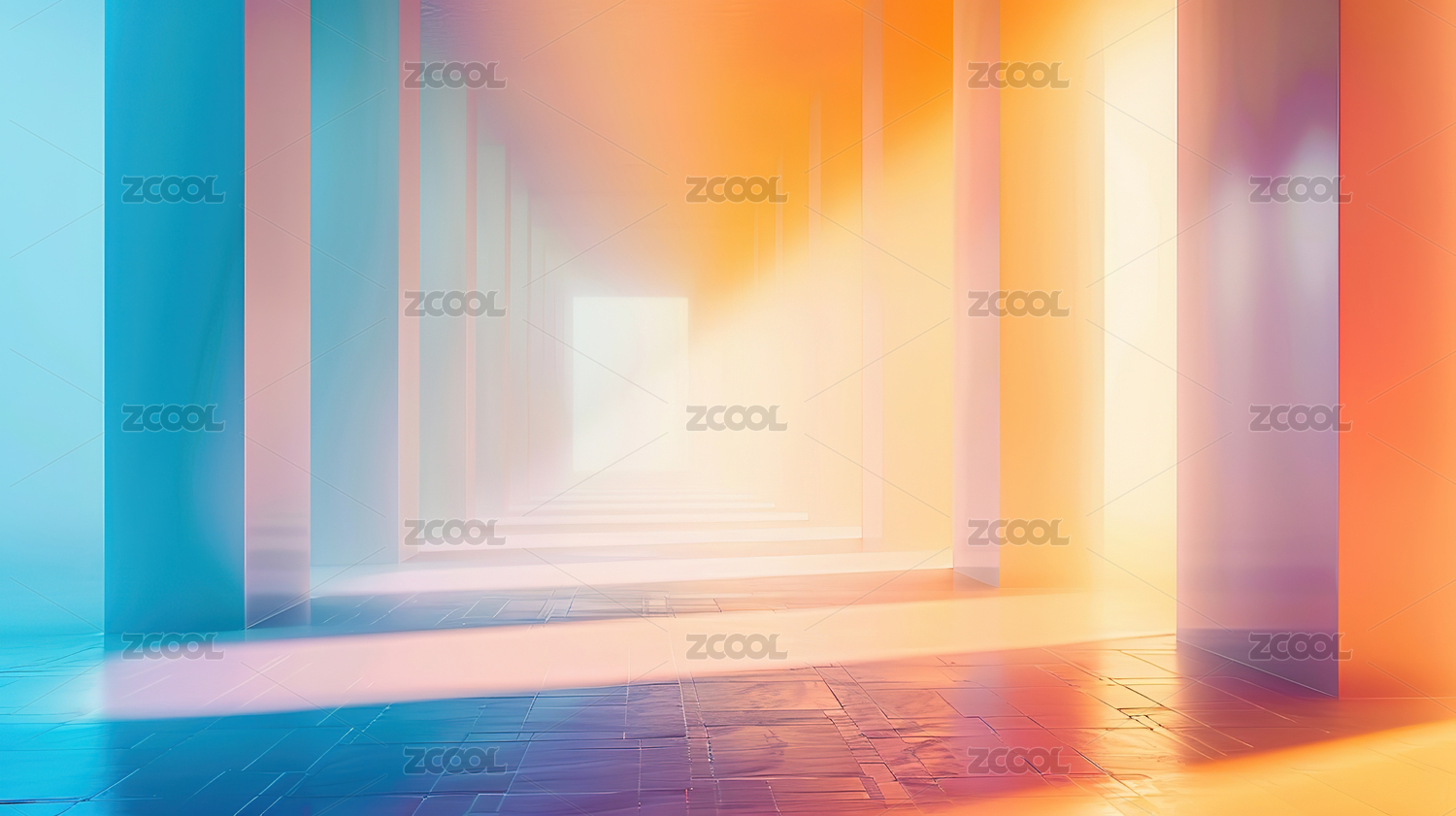 阳光穿过玻璃幕墙照在空场地上,商务背景