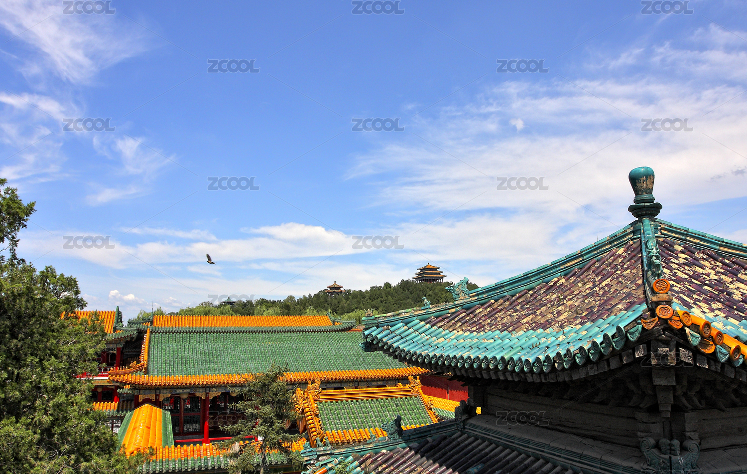 中国北京故宫里的宫殿琉璃瓦房顶与宫殿群