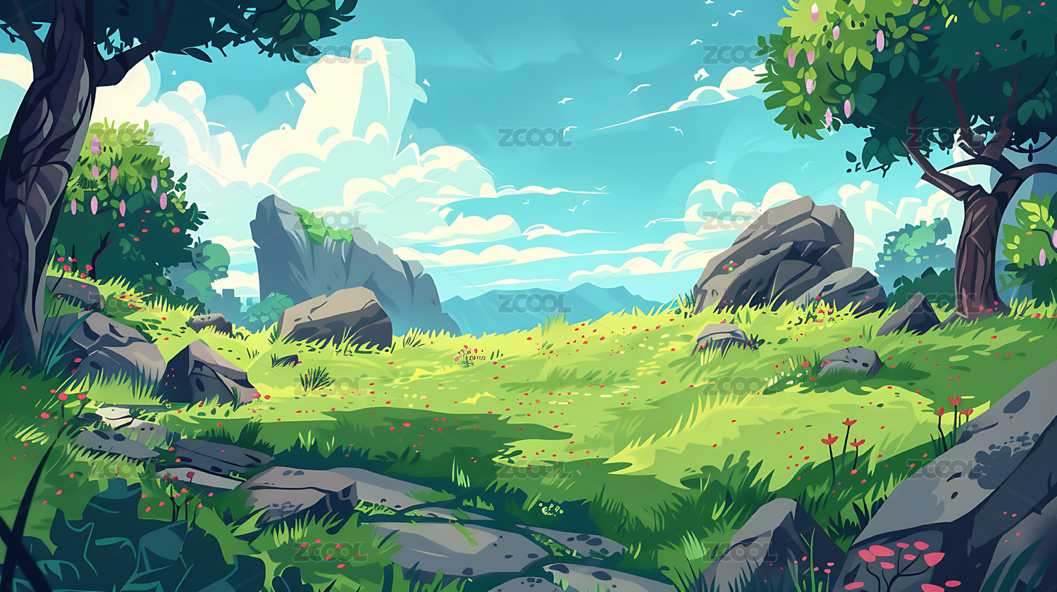 插画,卡通,动画,背景,风景,自然,植物,场景,绘本,漫画