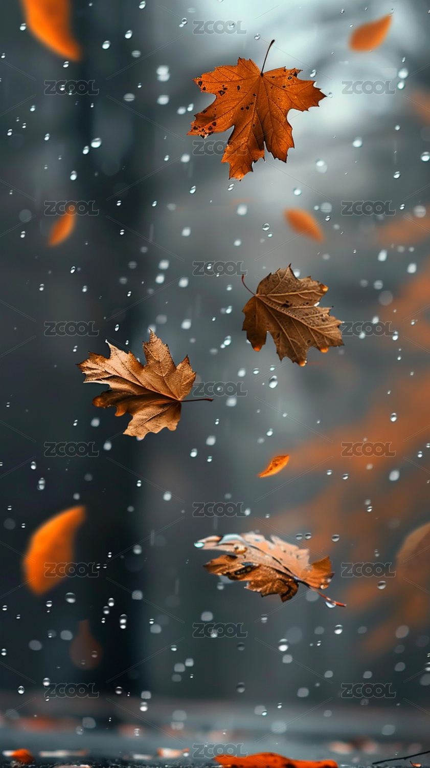 秋雨中飘落的枫叶