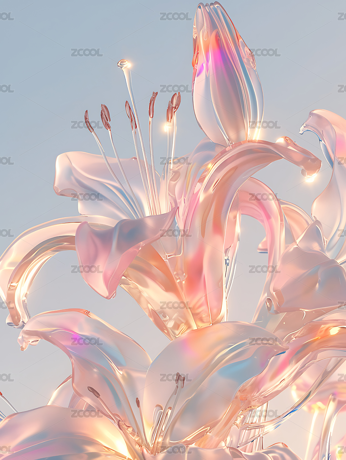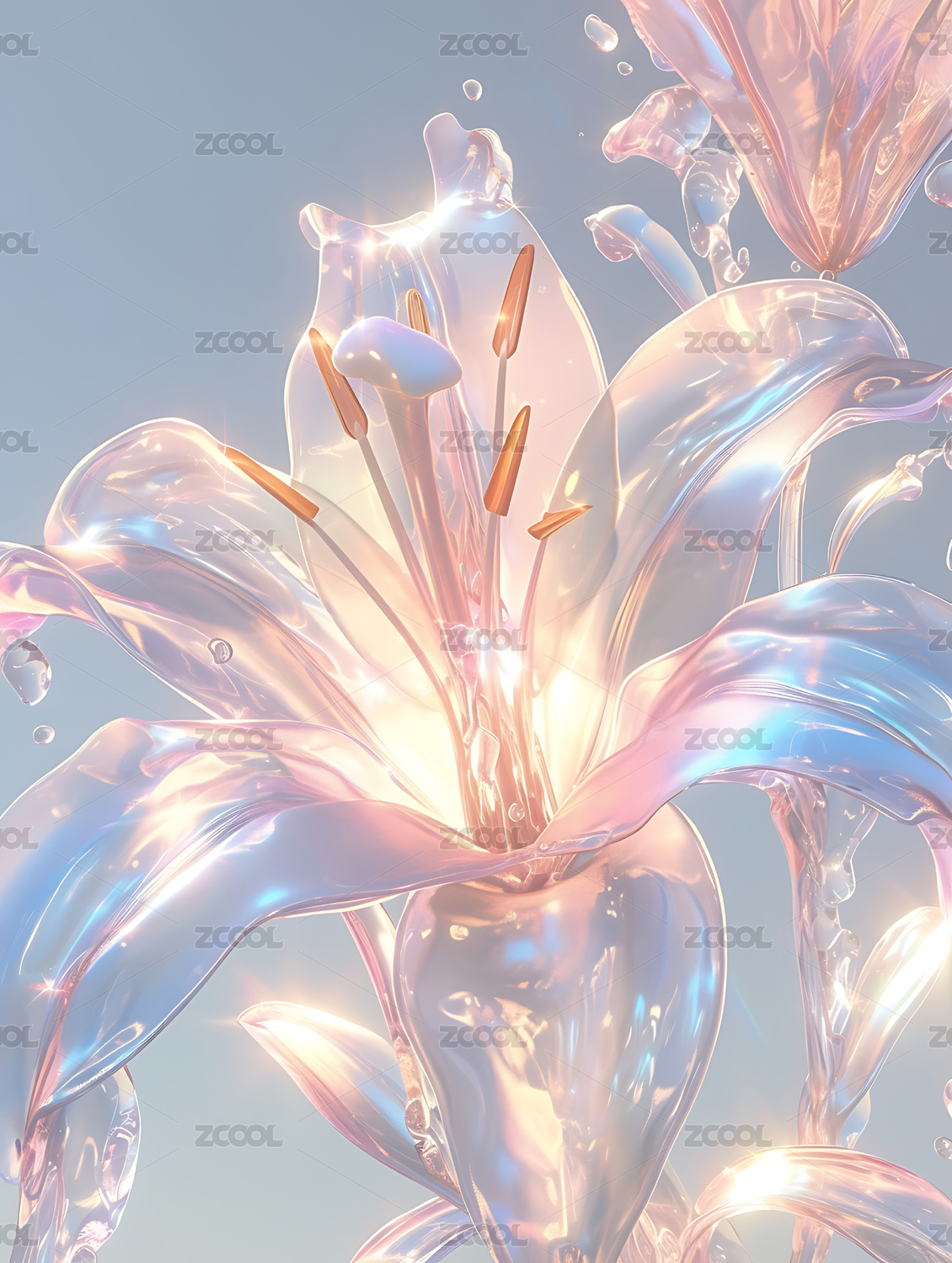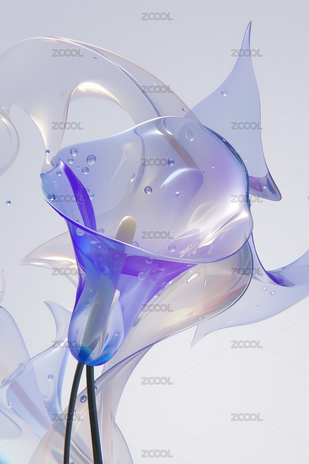 数字科技玻璃水晶花朵奇幻场景抽象图形