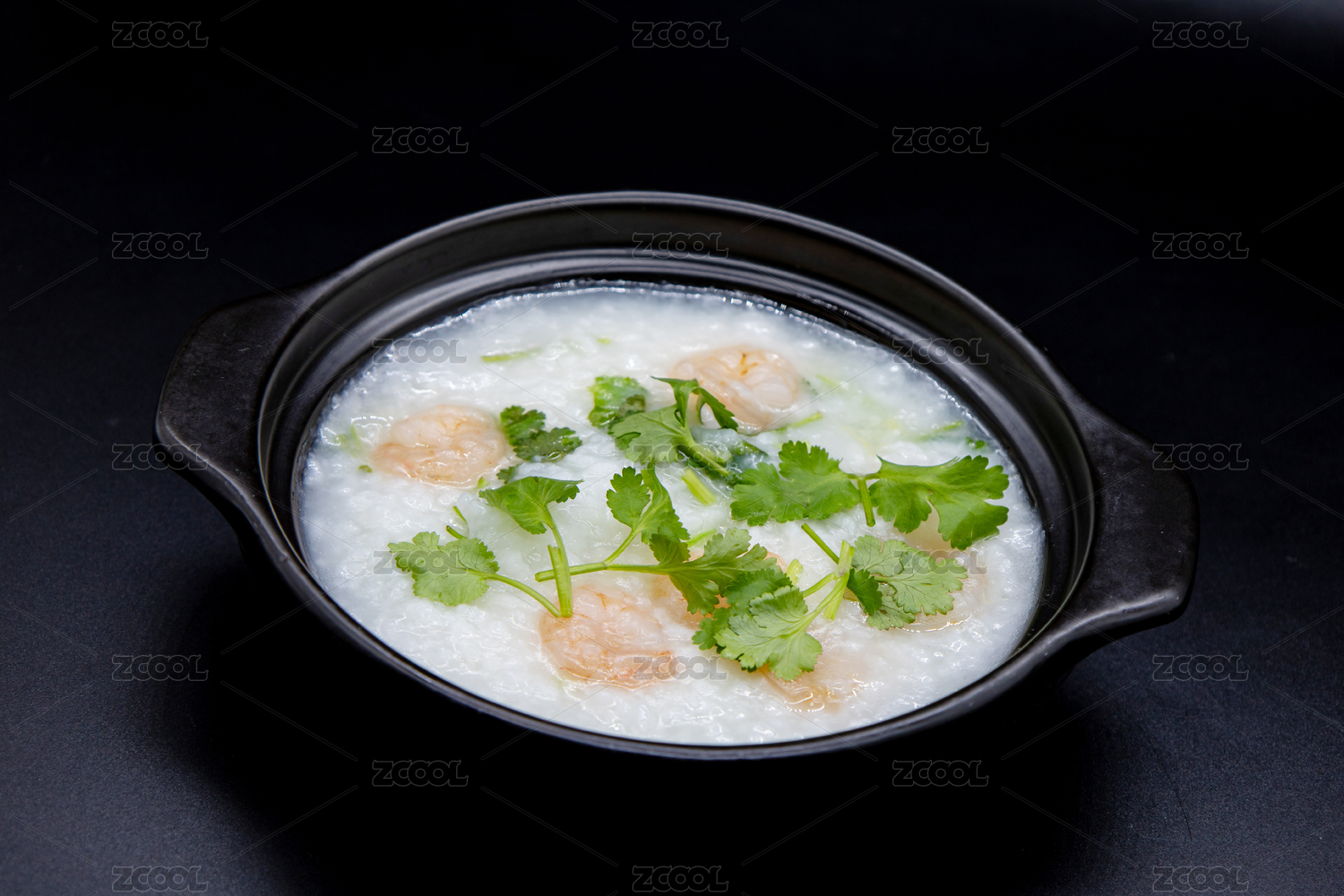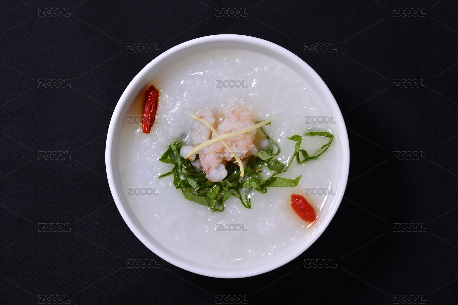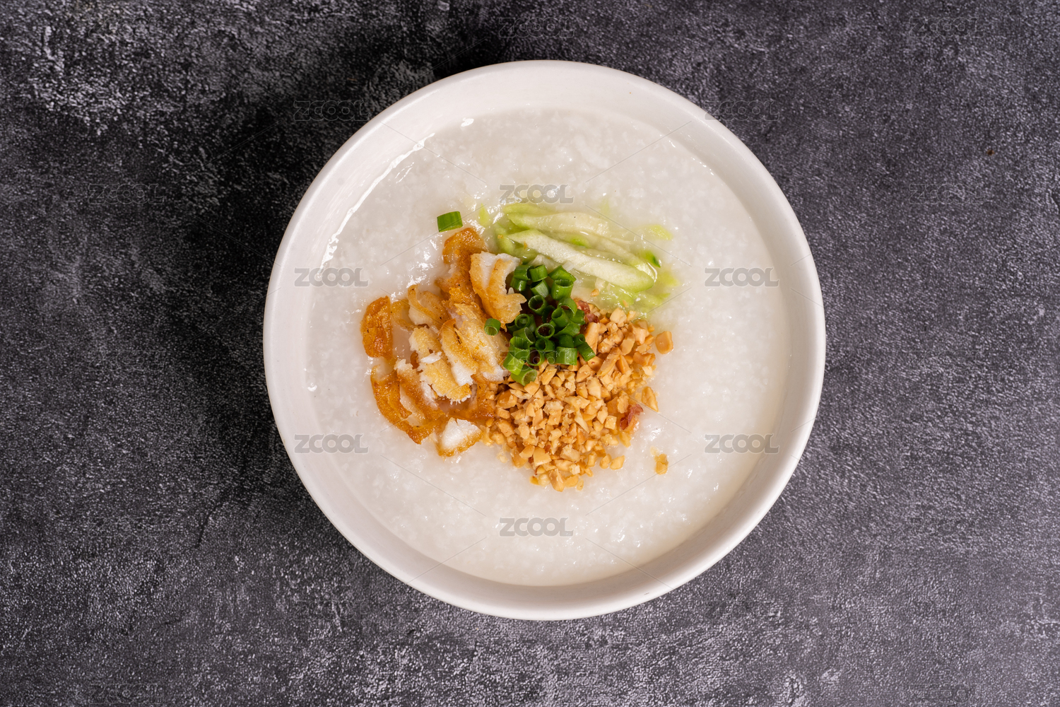 原色木托盘上的一碗皮蛋瘦肉粥特写