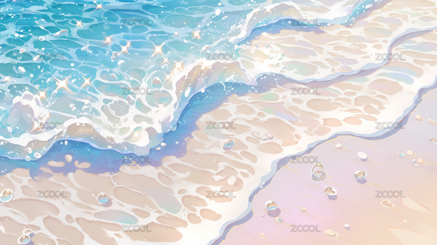 粉色沙滩与碧蓝海浪