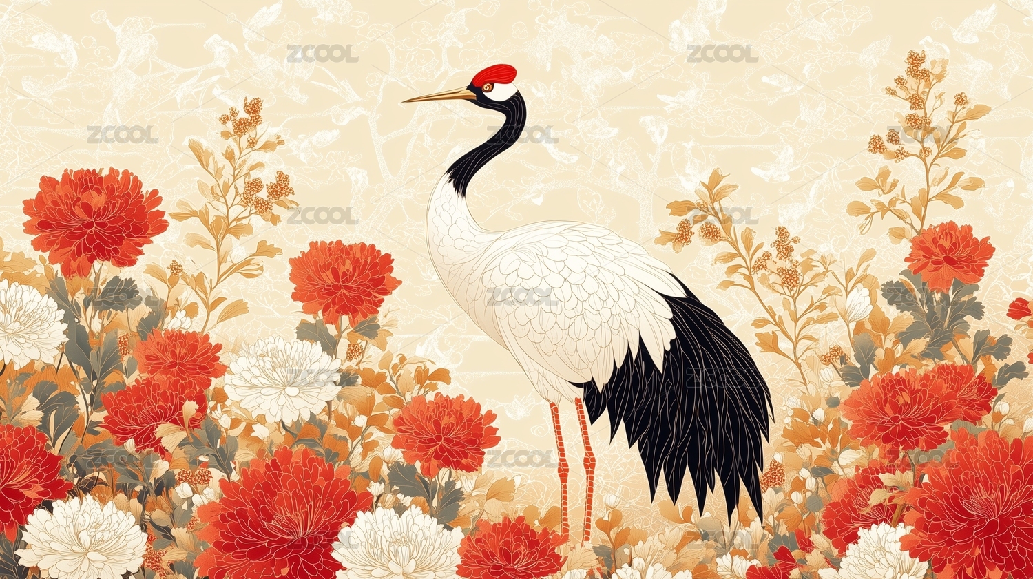 仙鹤与菊花