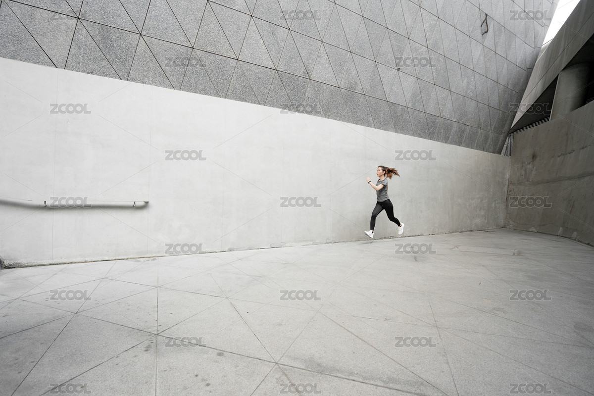 年轻女子在阶梯上快速跑