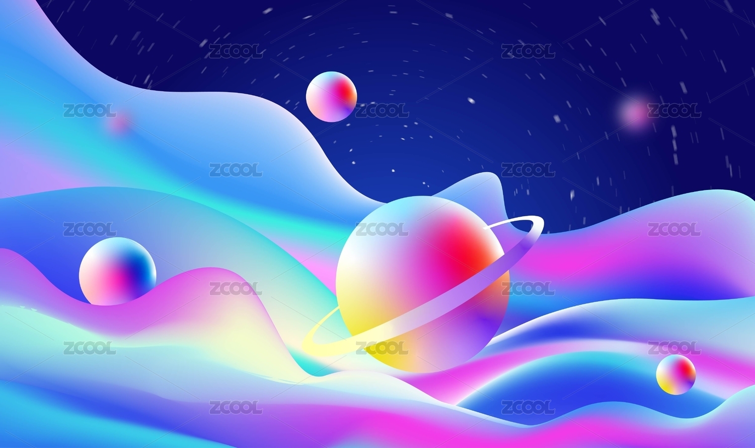赛博朋克渐变流体科技宇宙星球艺术插画
