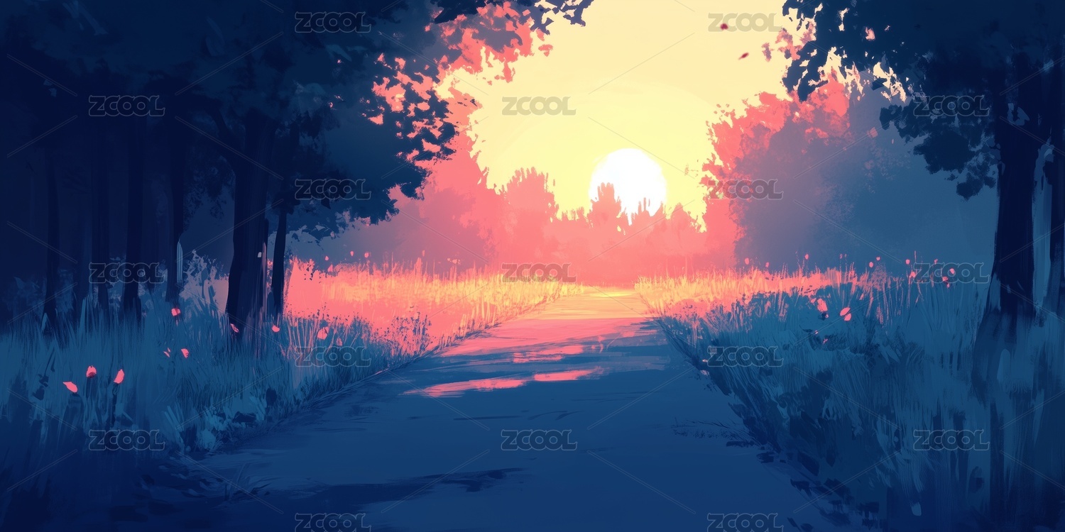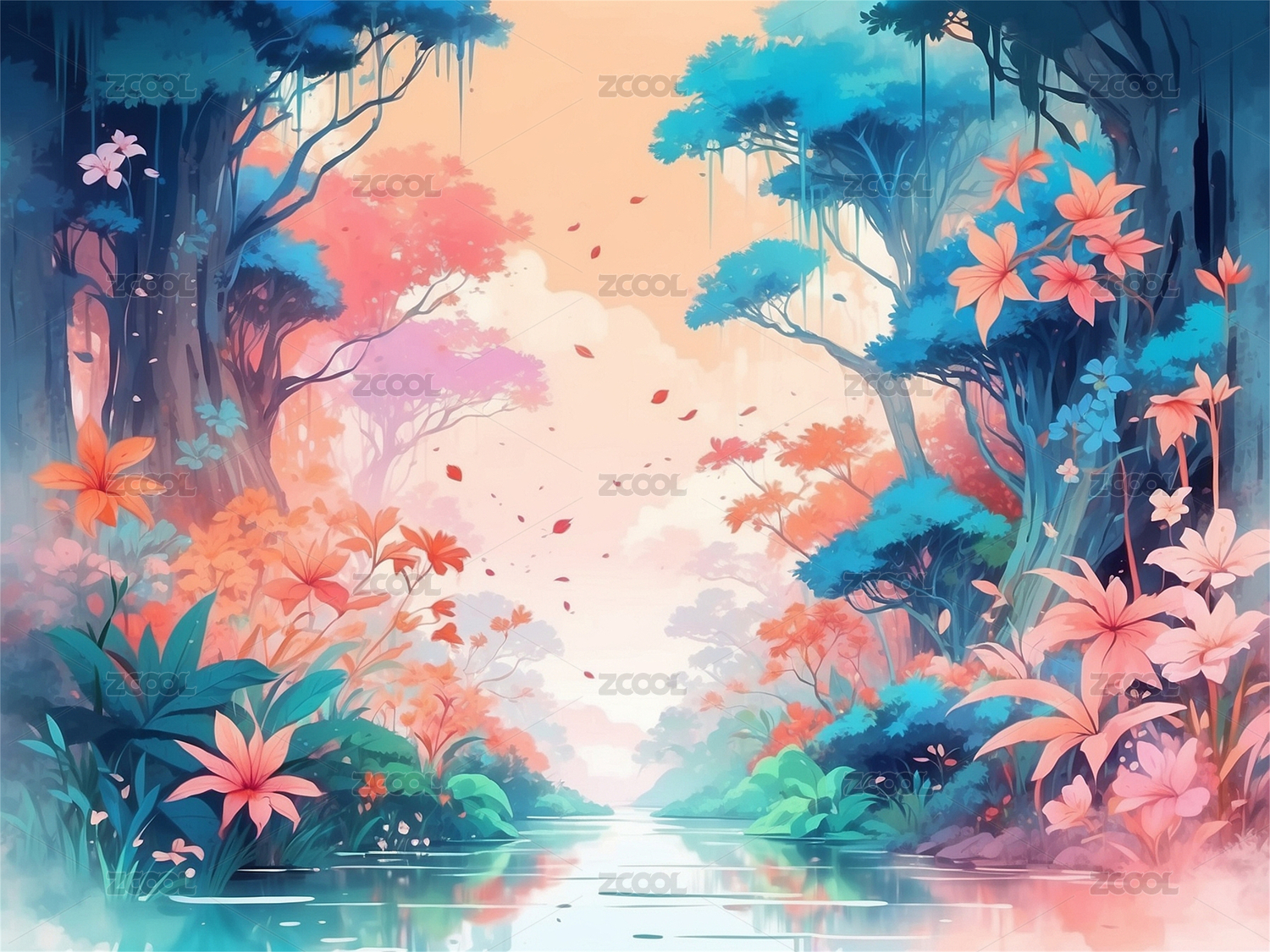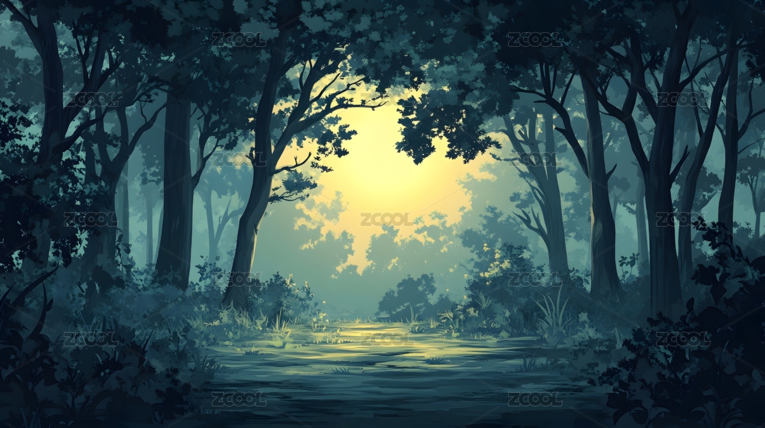 蓝紫色,清新,树,插画,风景,自然,宁静,植物,森林,户外