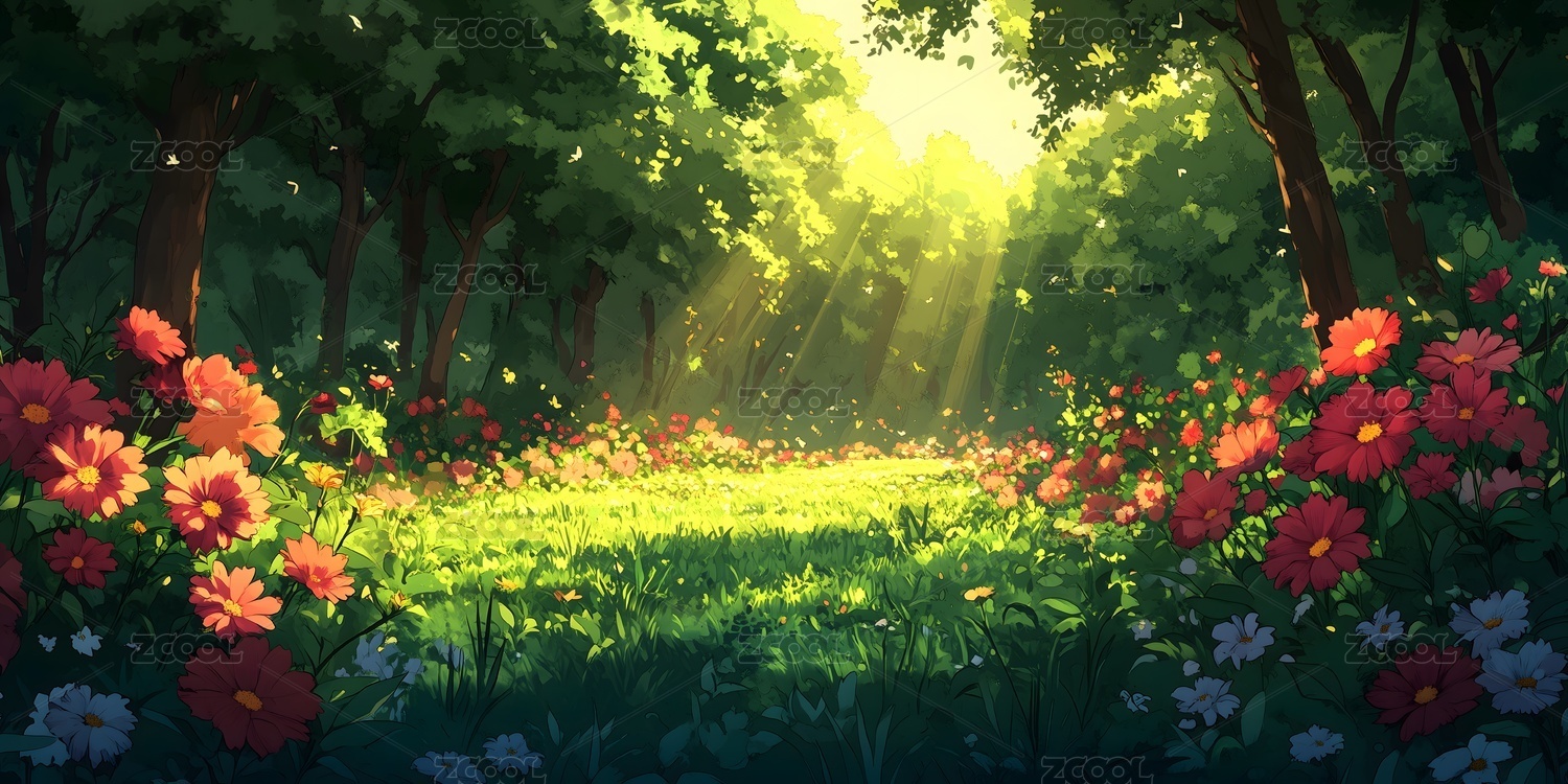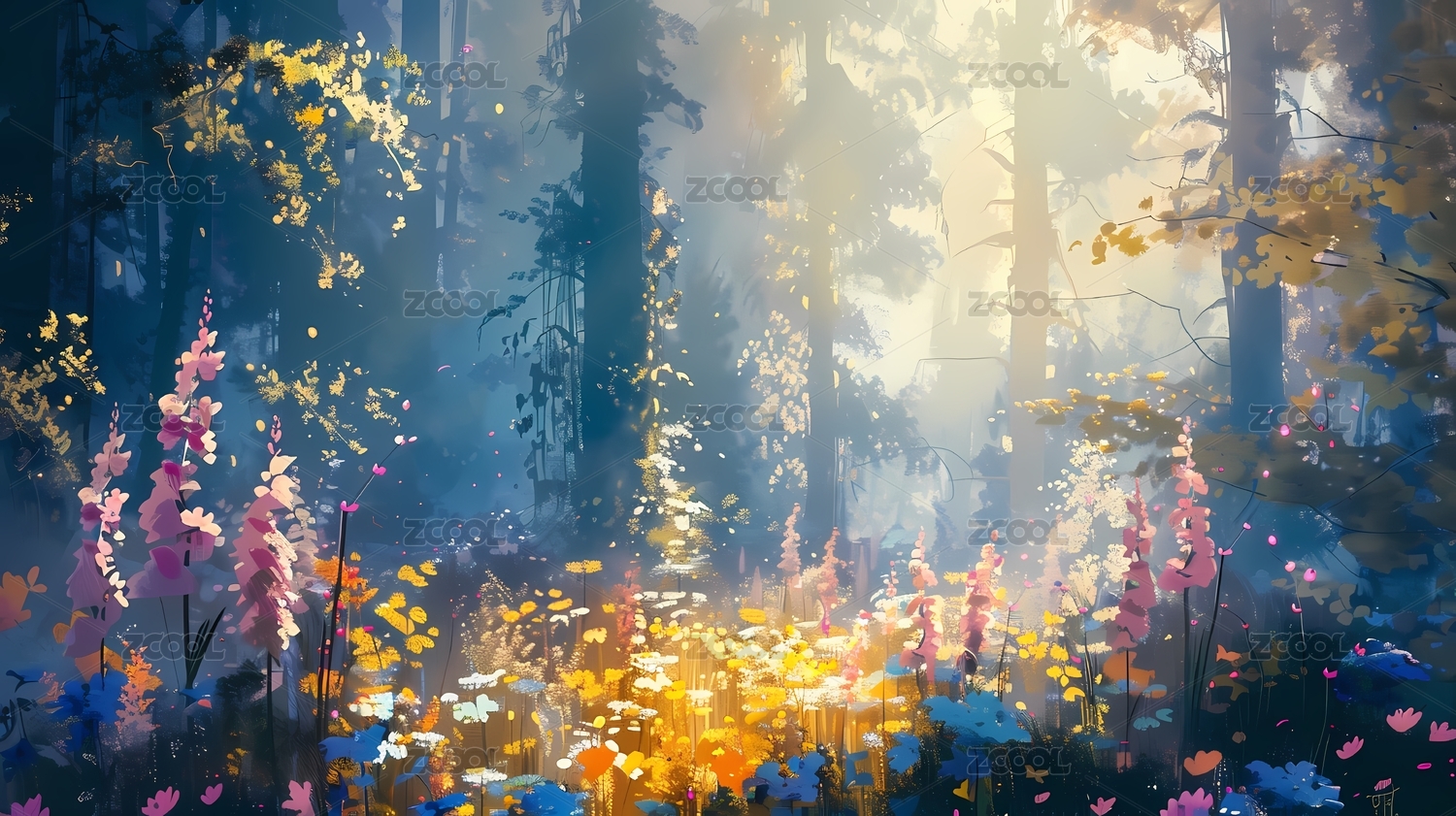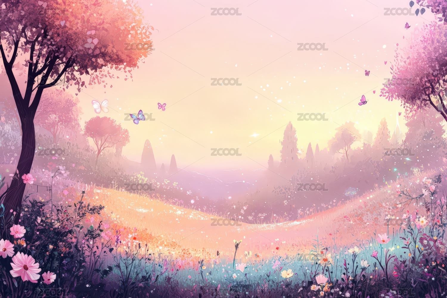 蓝紫色,清新,树,插画,风景,自然,宁静,植物,森林,户外