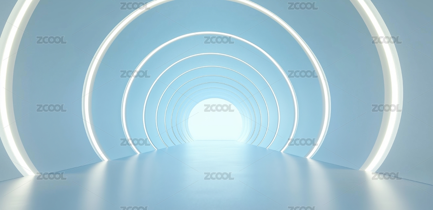 未来, 设计, 隧道, 蓝色, 光线, 空间, 抽象, 现代, 通道, 圆形