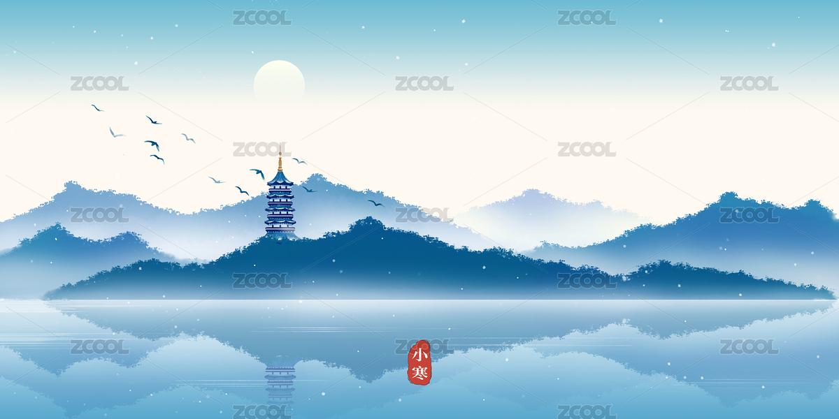 杭州西湖冬天唯美中国风插画