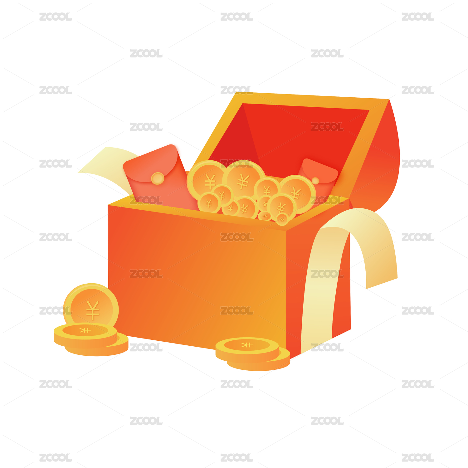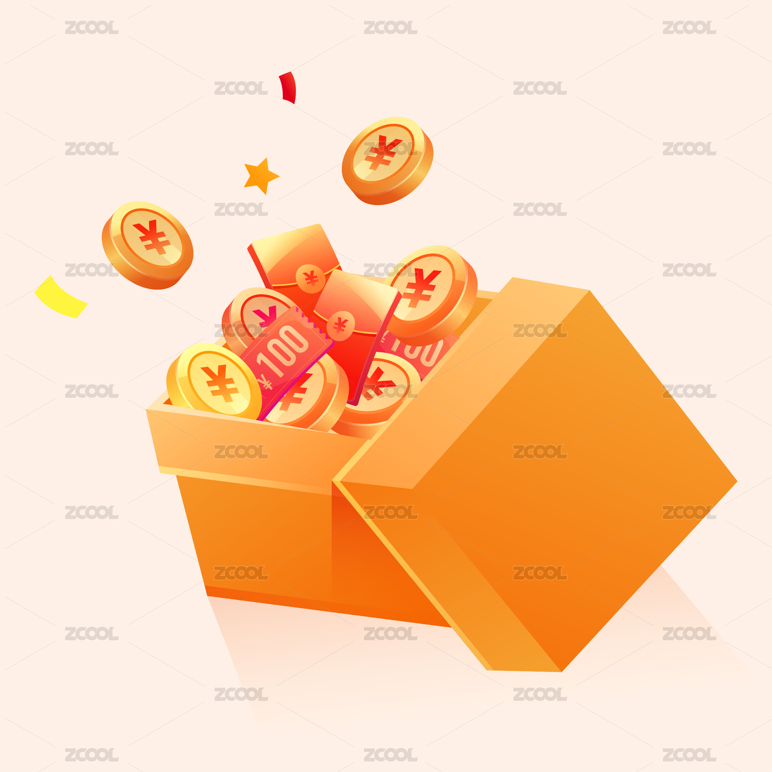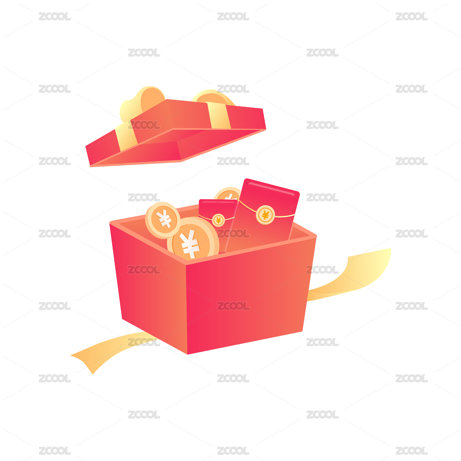 卡通礼盒促销抽奖互联网金融收益理财插画