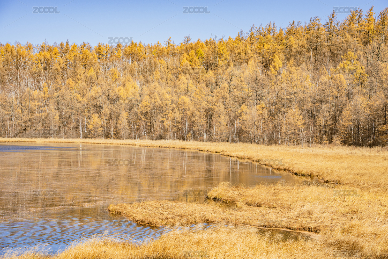 中国大兴安岭色彩斑斓的森林湿地秋景