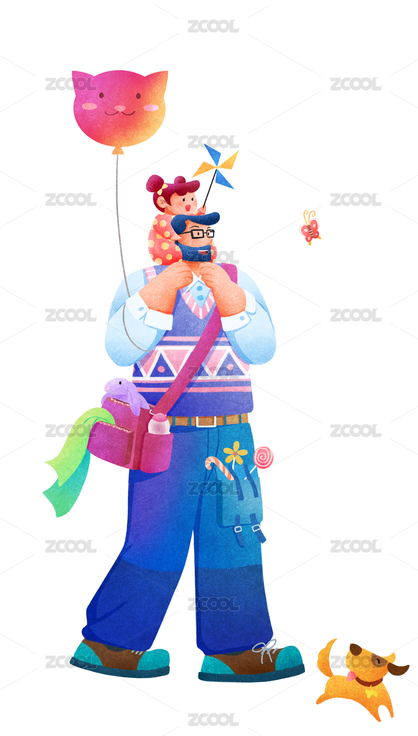 爸爸带着女儿出游无背景