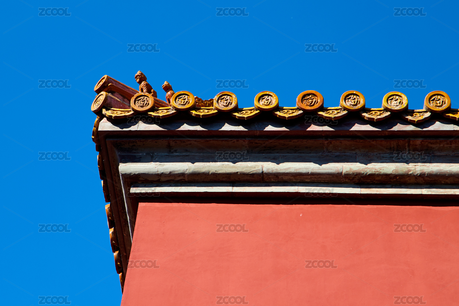 冬天大雪后宫墙红墙琉璃瓦风景特写