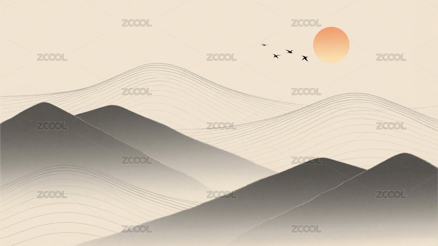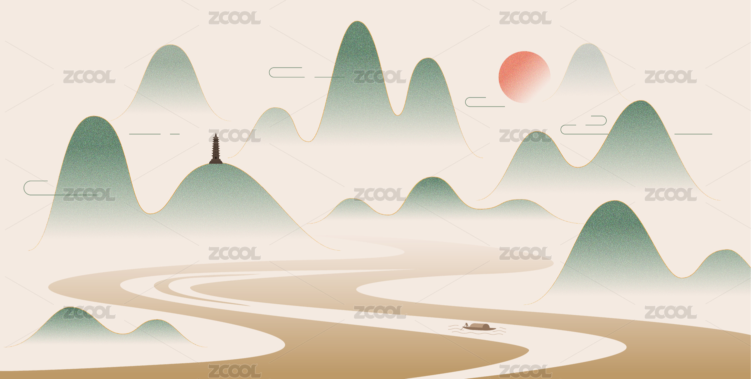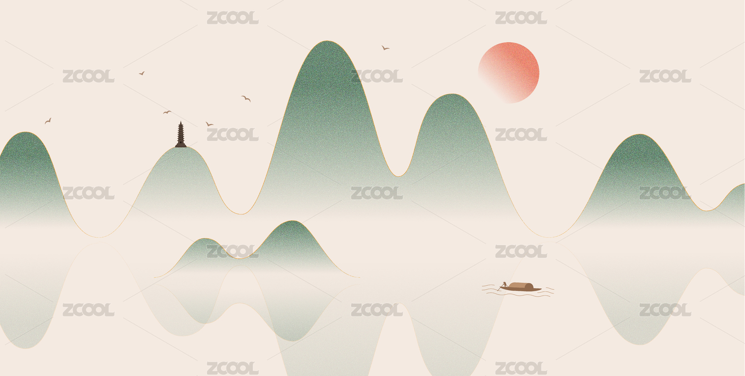 中国风,简约,山水,几何,简洁,冷淡风,写意,扁平,线描,线条