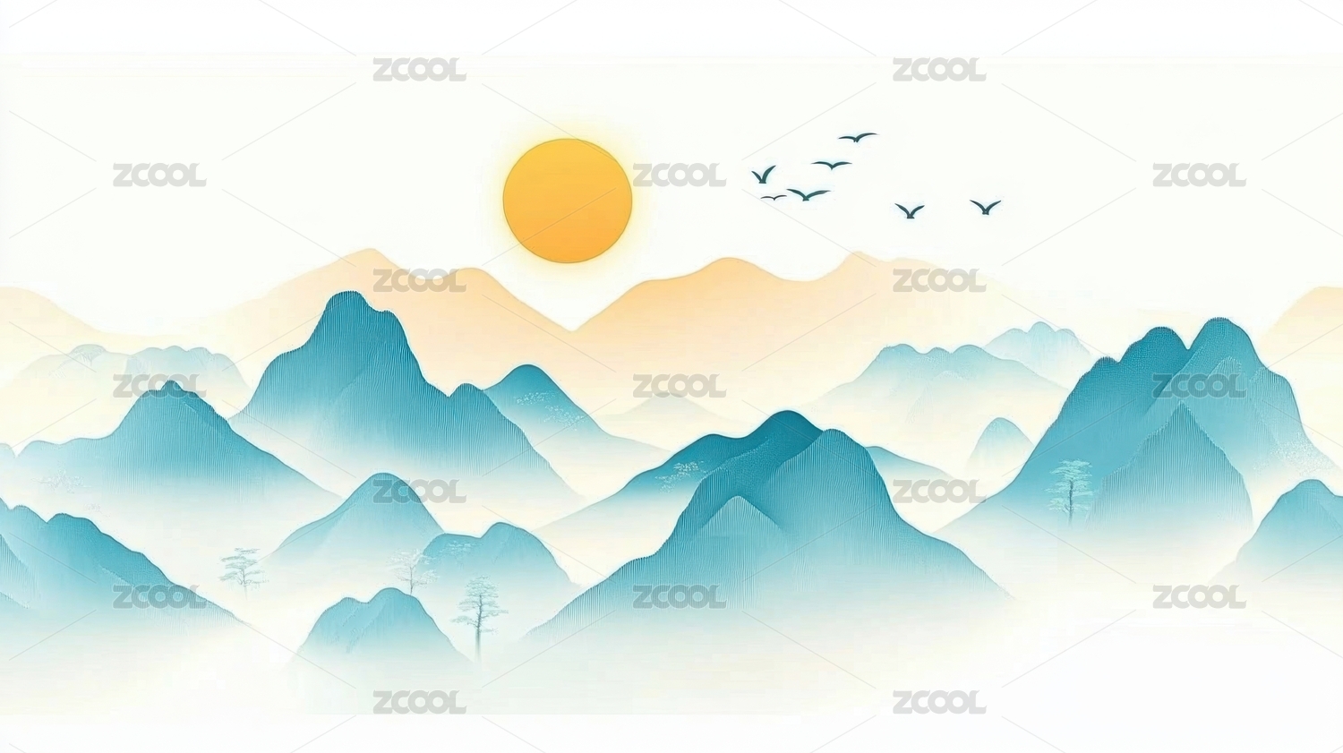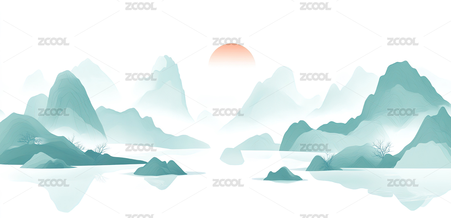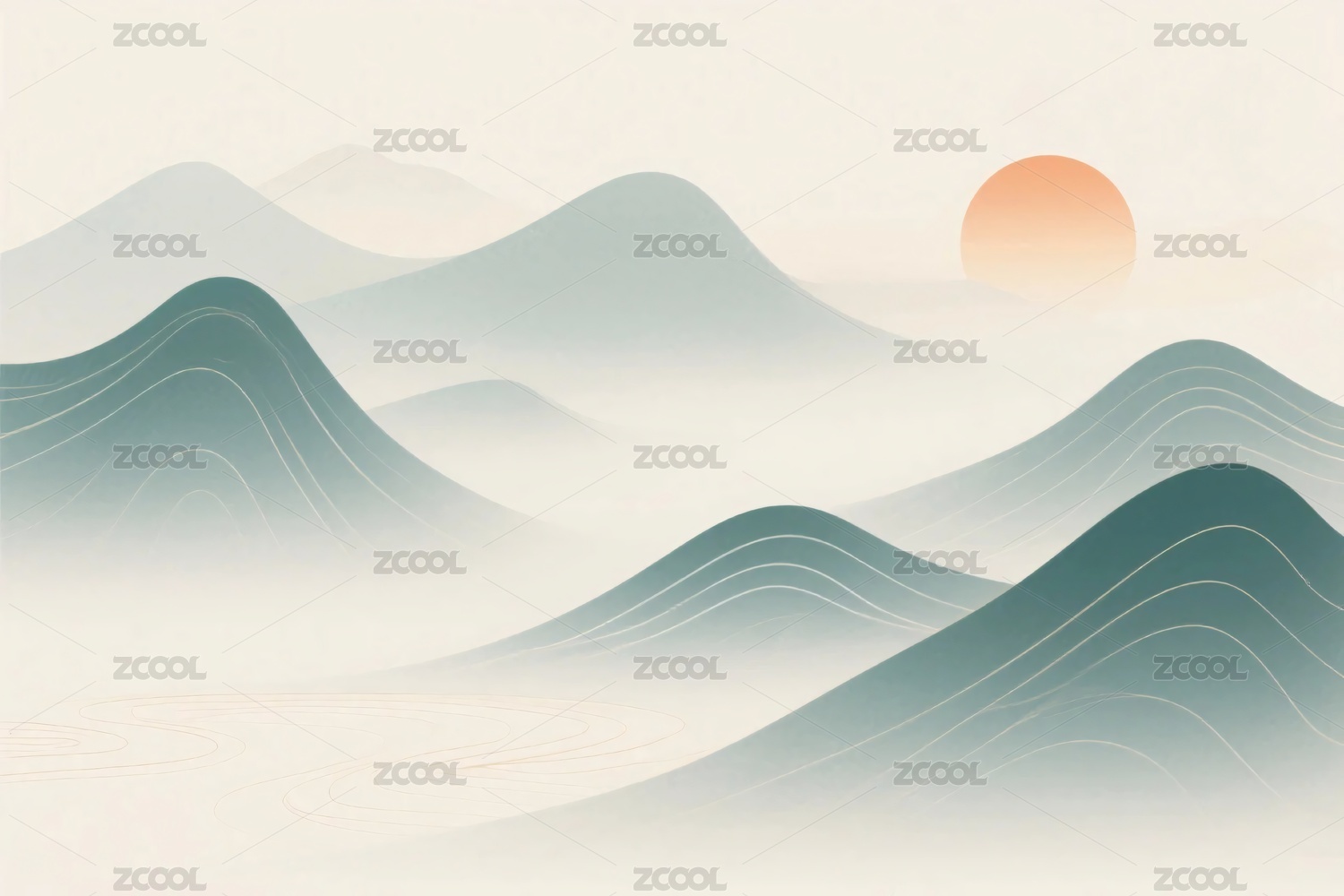 中国风,简约,山水,几何,简洁,冷淡风,写意,扁平,线描,线条