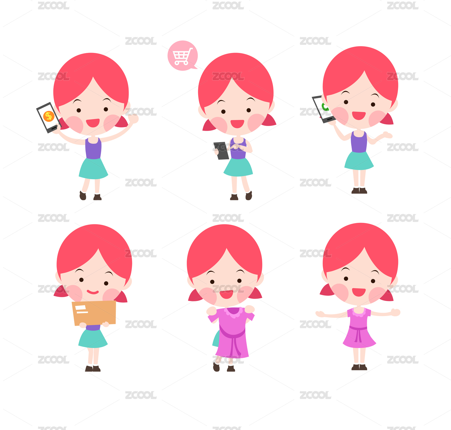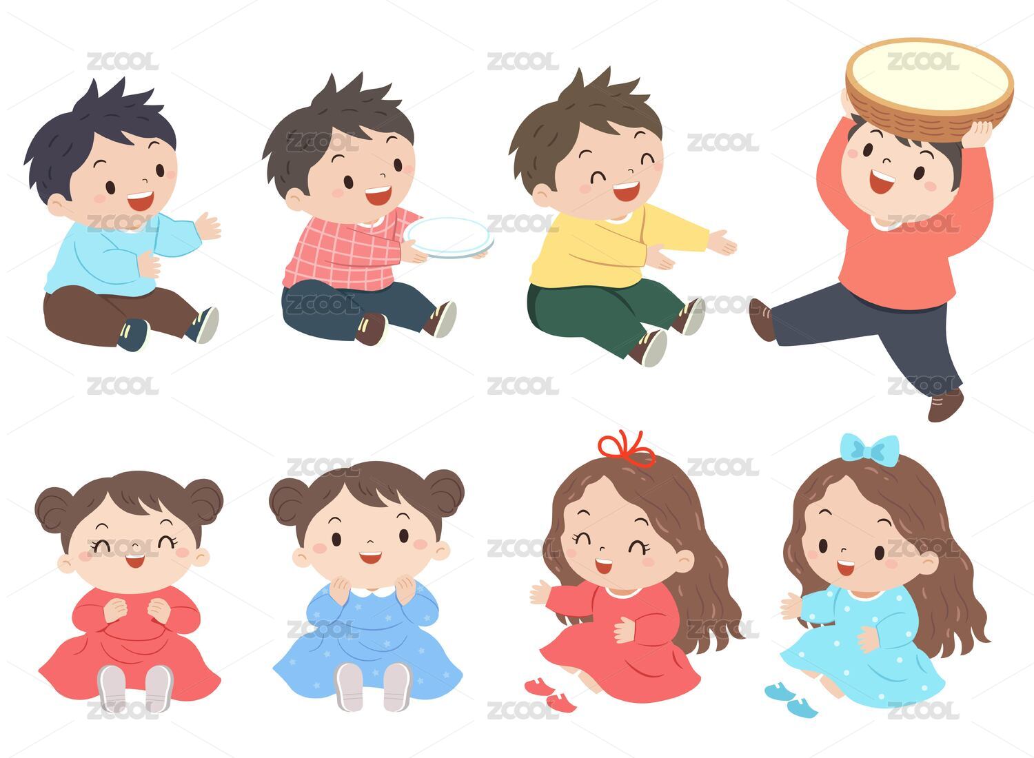 女孩,儿童,孩子,红色,插画,开心,表情,系列人物,动作