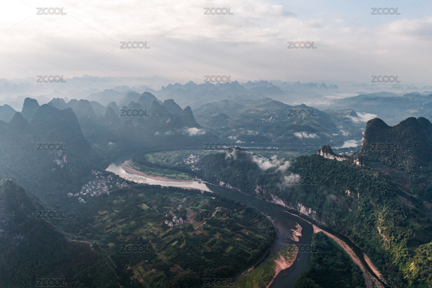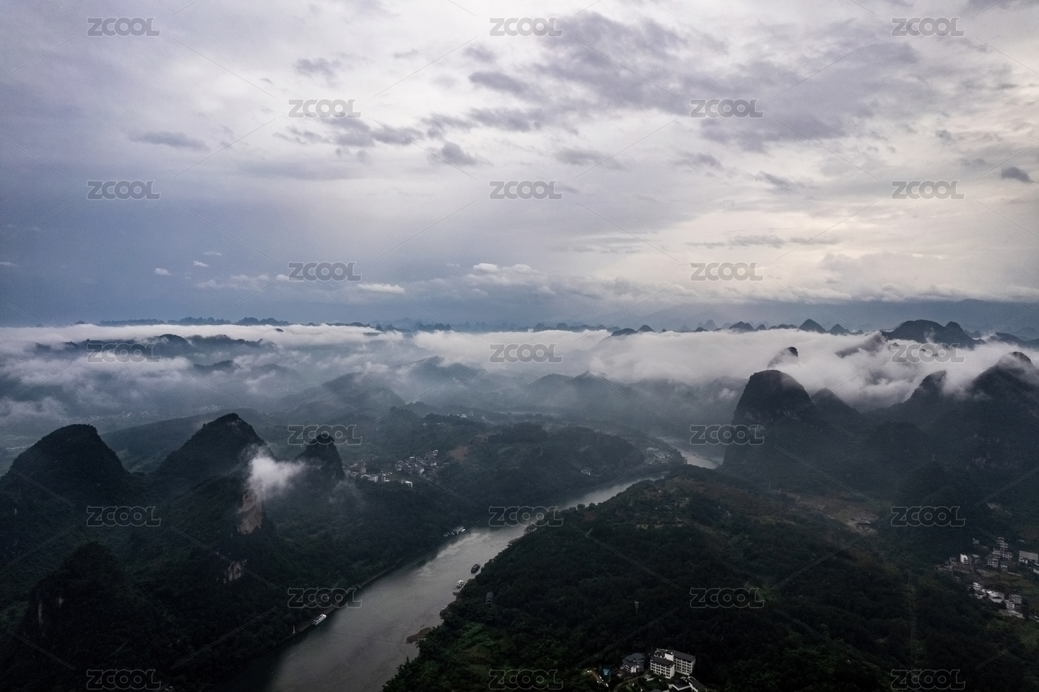 桂林阳朔县漓江沿岸自然风光城镇风景云海