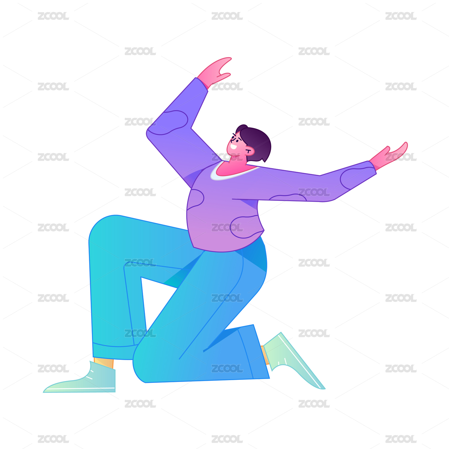人物坐姿造型互联网矢量扁平渐变插画