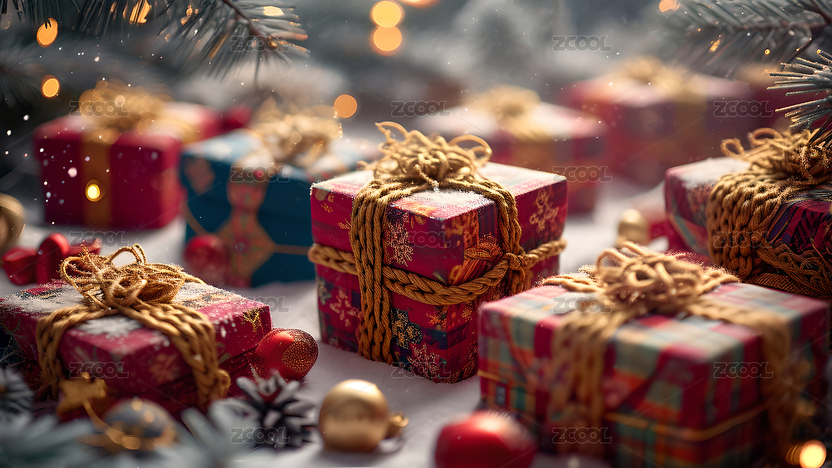 圣诞节,圣诞,圣诞树,彩灯,礼物盒,冬青叶,红果,雪花,节日,温馨
