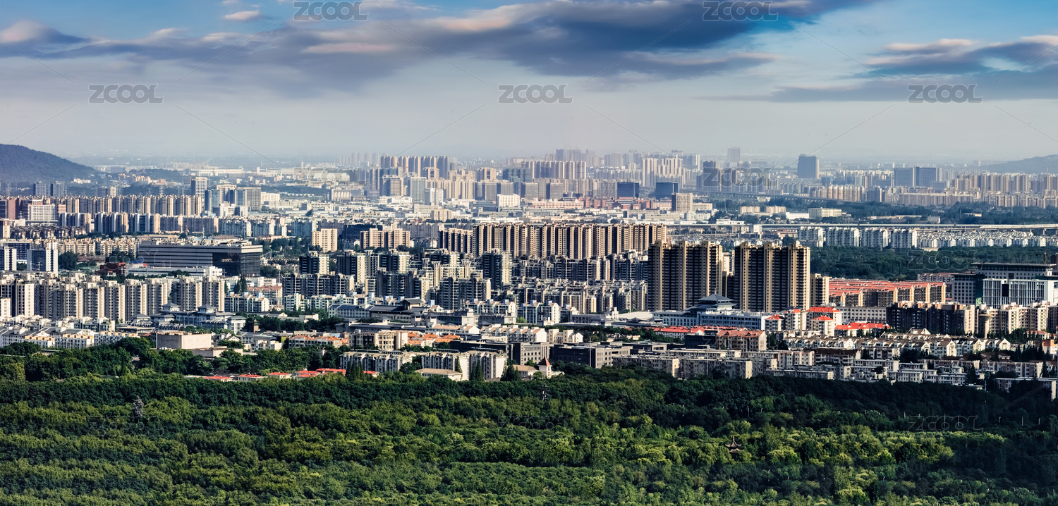 傍晚的辽宁省大连市天际线,摄于富国公园