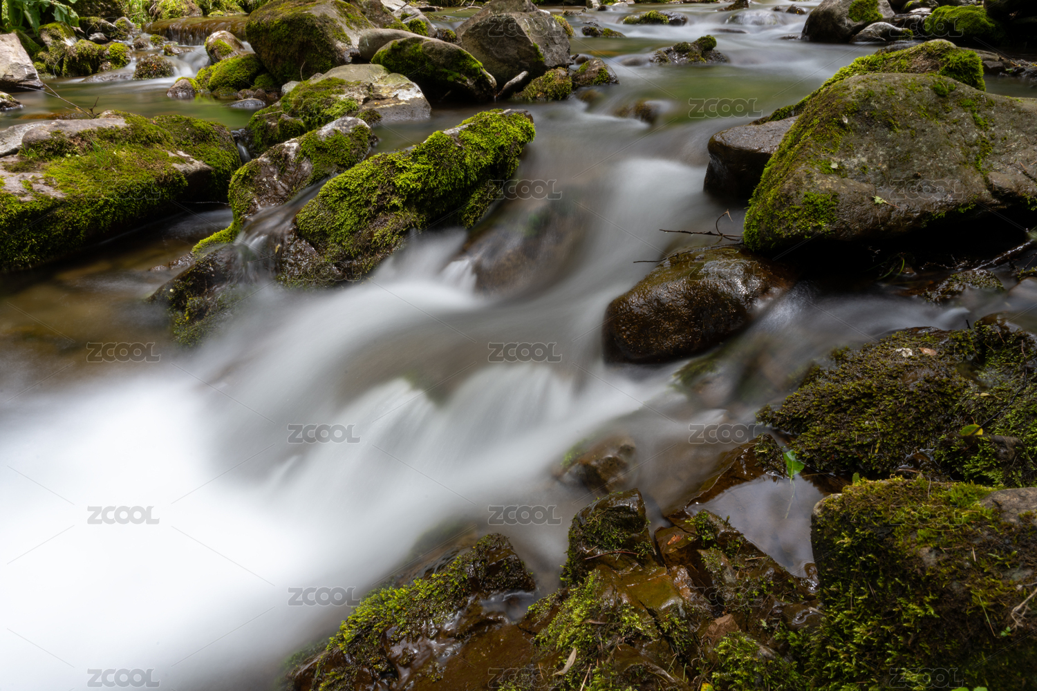 清澈的小溪流动慢门摄影
