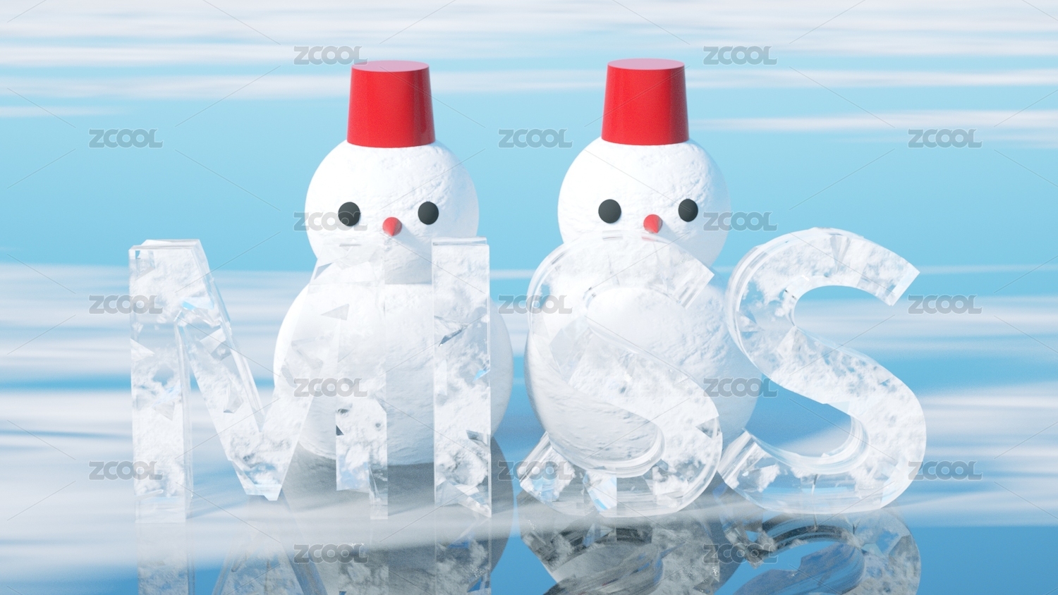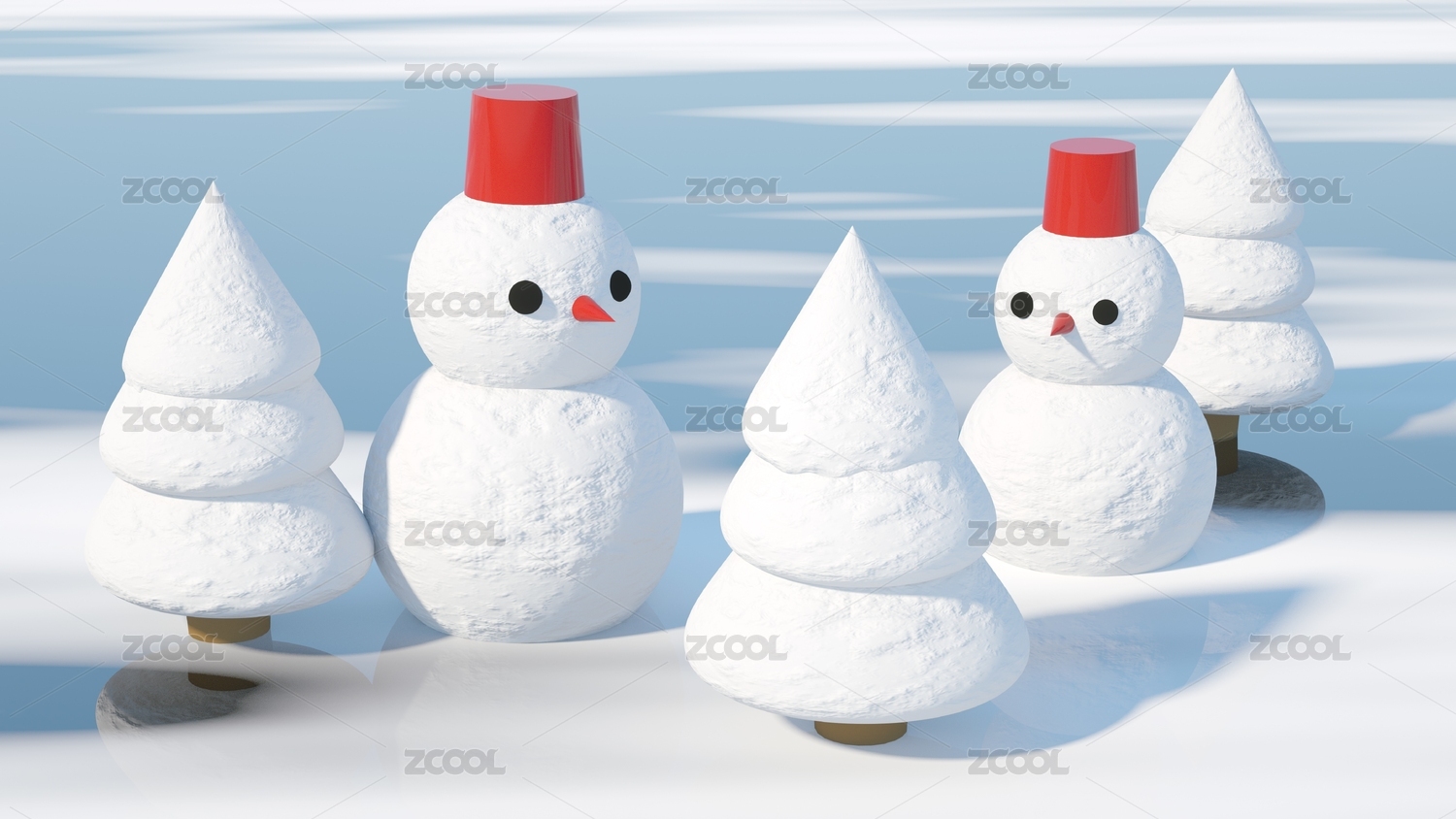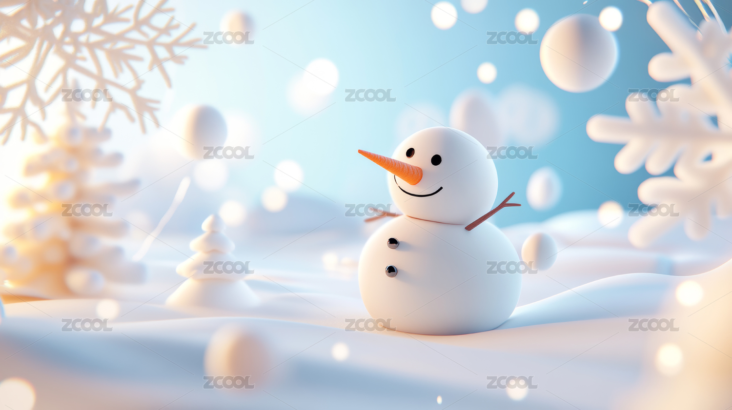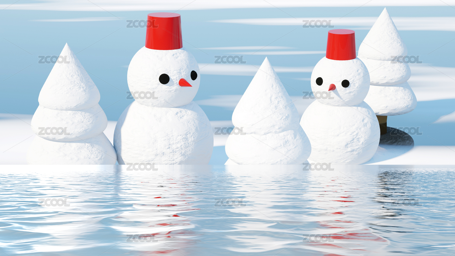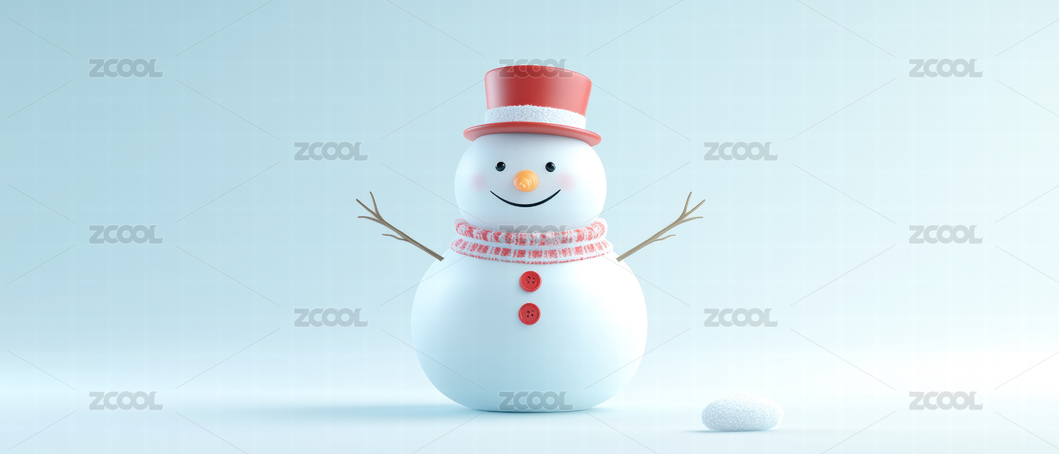 雪地里的雪人夏天小清新场景