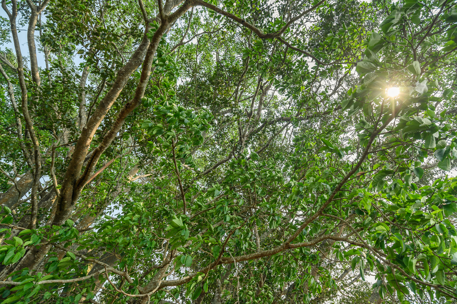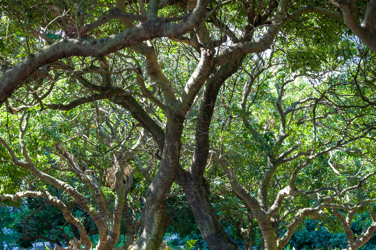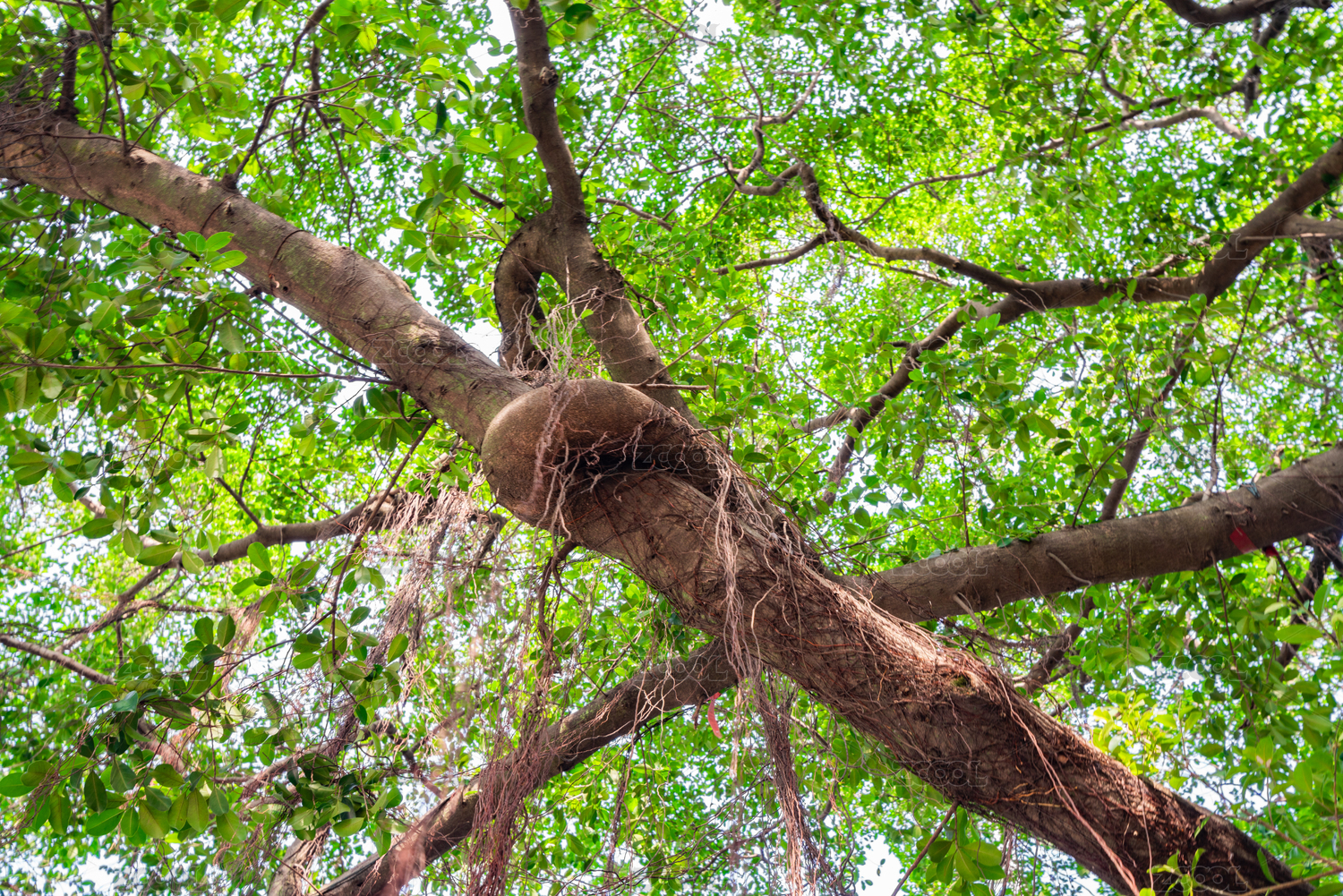 枝繁叶茂的榕树,茂密枝叶交织的古老大树