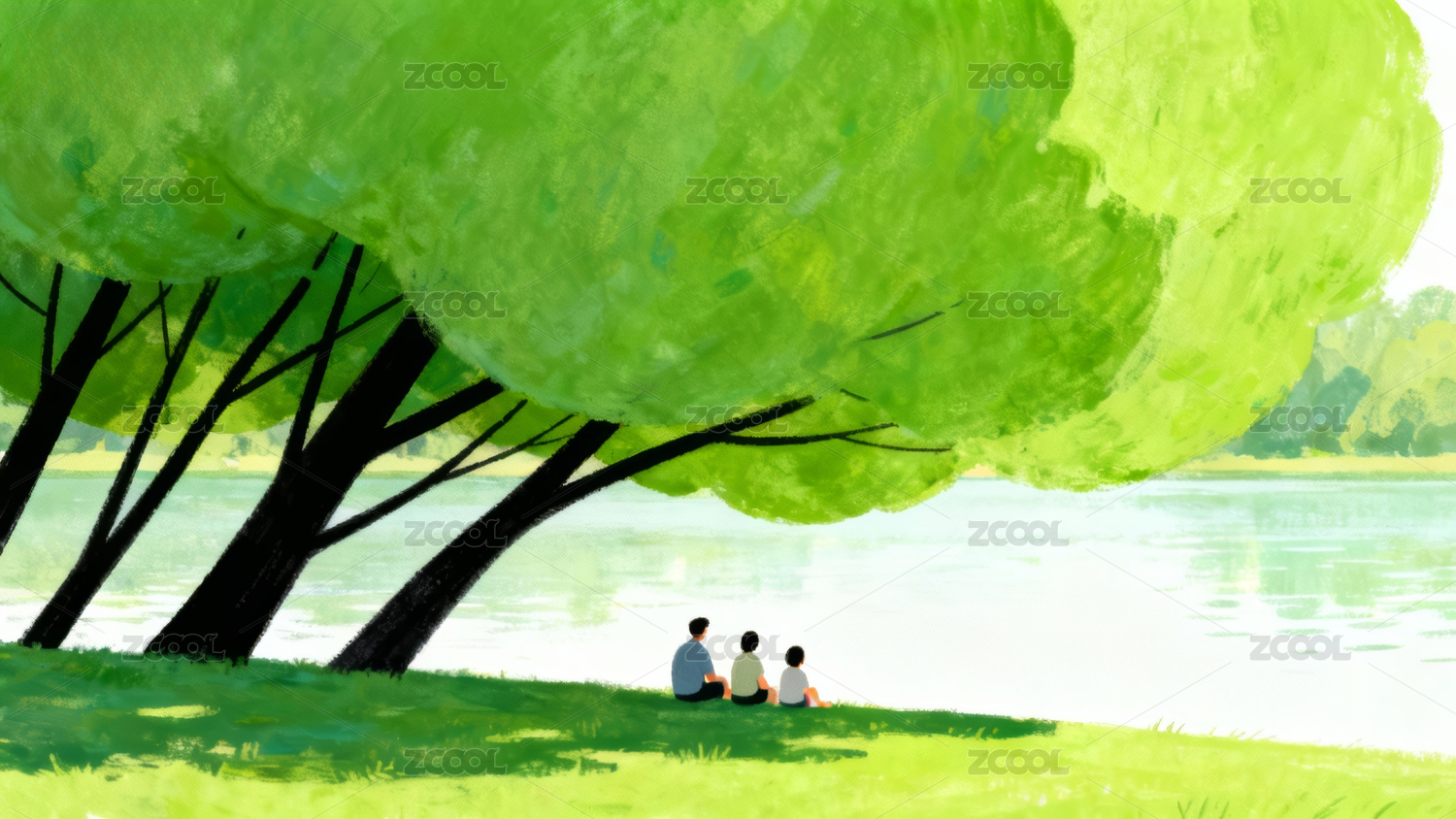 树下两人风景插画