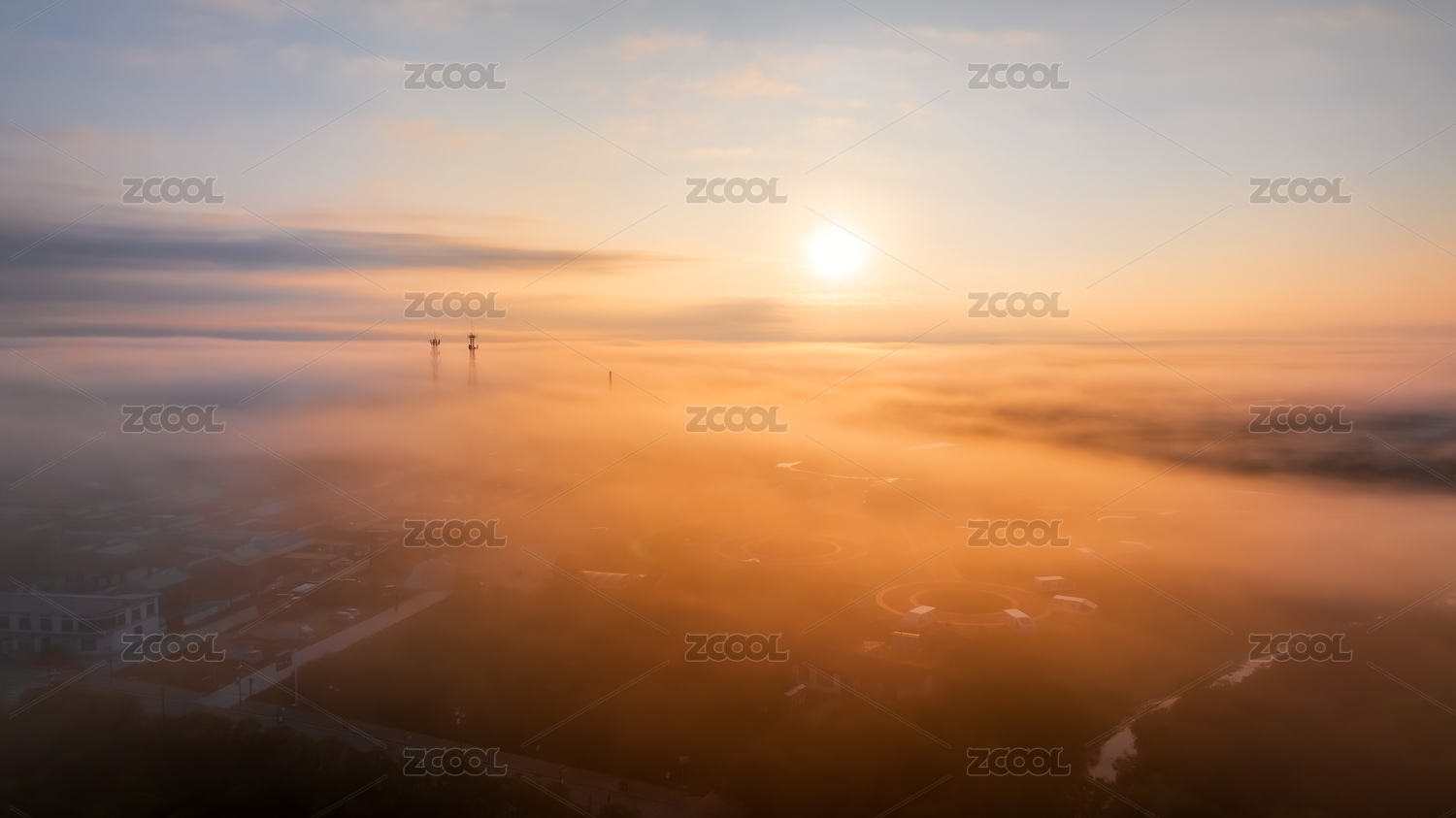 中国河南巩义豫联工业园热电厂秋季晨雾航拍