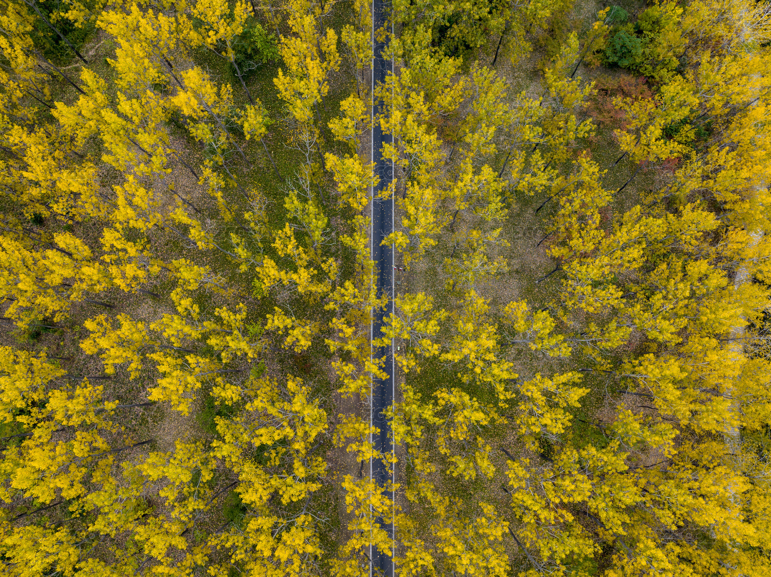 中国山东枣庄葫芦套景区弯弯山路穿越森林